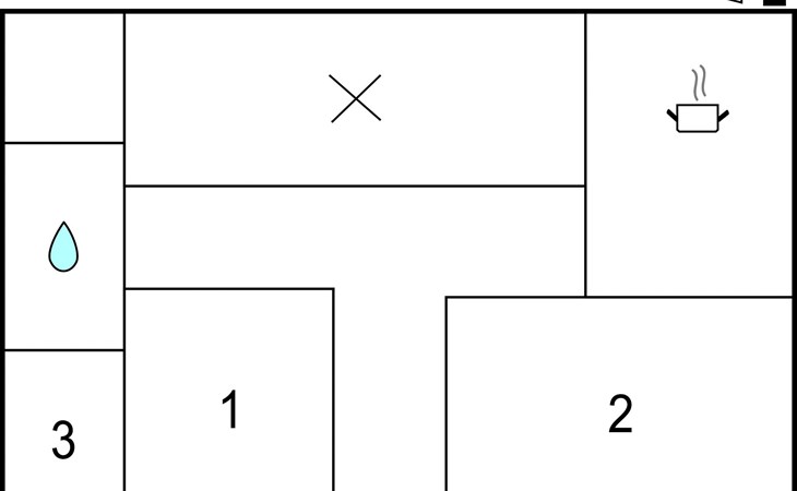 It is divided into living room, three bedrooms, bathroom and a large covered terrace. The living room with couch, dining area and open kitchen offers space for the whole family to have breakfast together. Bread rolls, eggs, milk and honey can be ordered from the owner.