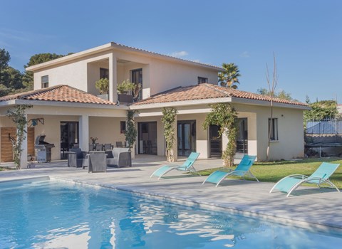 This spacious, airy and cool vacation home is ideally located between the mountains and the Mediterranean coast. With a pool and a hammock, it has plenty of space to play. Stores are a 5-minute walk away. Tennis and bike rentals are 5 minutes away by car. Canoeing, kayaking and white water sports are available at Marquizanes, and there is a swimming lake at Vinca. The Little Yellow Train winds up the mountain from Villefranche-de-Conflent, where you can also see the Grottes des Grandes Canalettes. The beaches at Colliure and Argelès-sur-Mer are an hour away by car. Barcelona is only 2½ hours away.