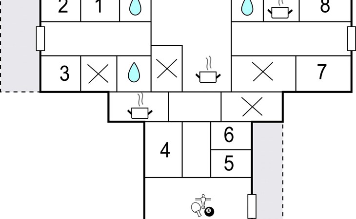 In the spacious house you can make yourself wonderfully comfortable with several families and you will lack nothing on vacation. The bright rooms with modern furnishings and large windows that let a lot of daylight into the house create a cozy feel-good atmosphere and offer plenty of space for joint activities. No matter whether you love it musically, sporty or playful, there will be no boredom here on vacation. Relax with a view of the greenery and enjoy your time together.
