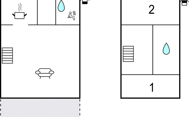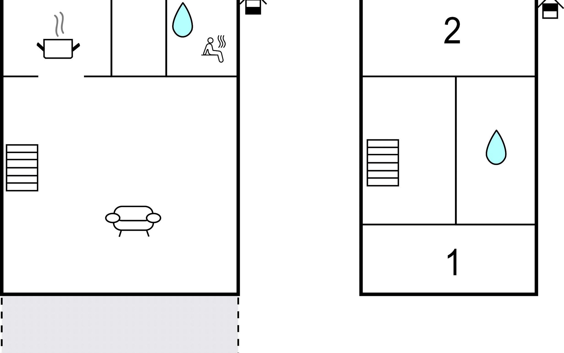 While the bathroom on the first floor is equipped with an infrared sauna, you can look forward to a whirlpool tub in the bathroom on the upper floor. In the first bedroom, you will find two single beds, each of which can be pulled out in the lower part of the bed, providing a total of four sleeping places. In the second bedroom there is a cozy double bed.