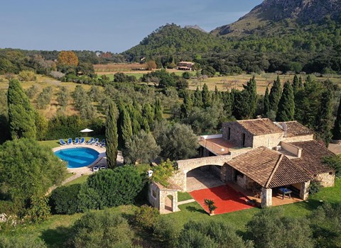 The classically elegant finca Son Blavet rises impressively on a gentle hill surrounded by greenery between the town of Manacor and the coastal town of Porto Cristo. The location is wonderfully quiet and Manacor, Cala Mendia and Porto Cristo as well as various beaches are less than 10 kilometres away.