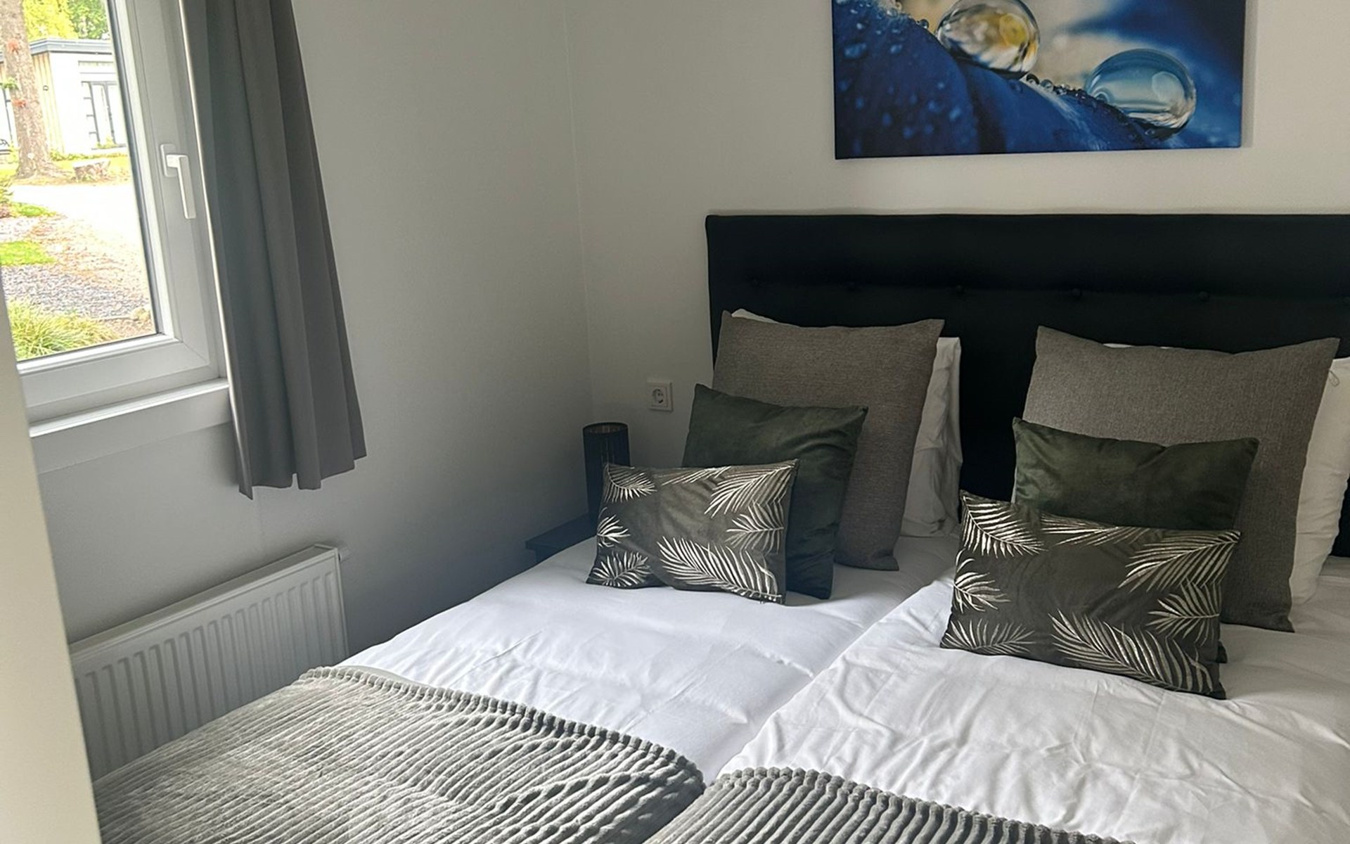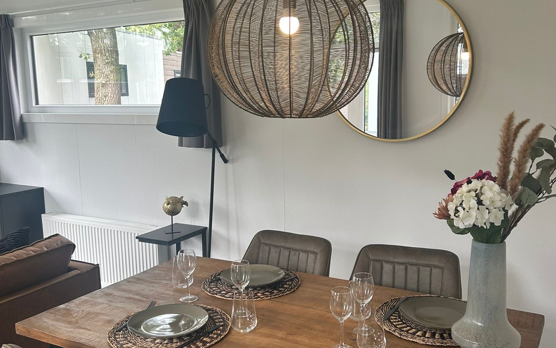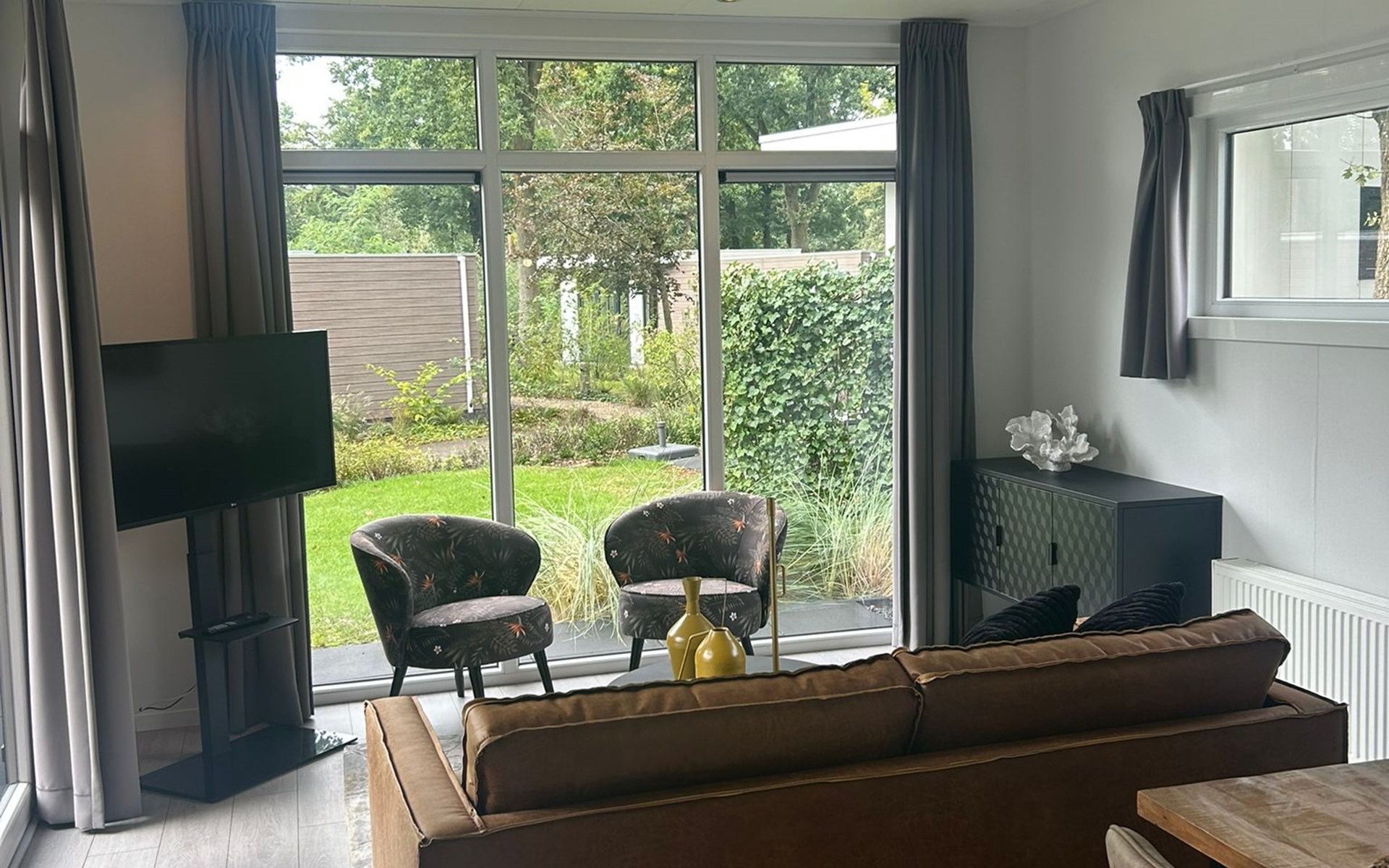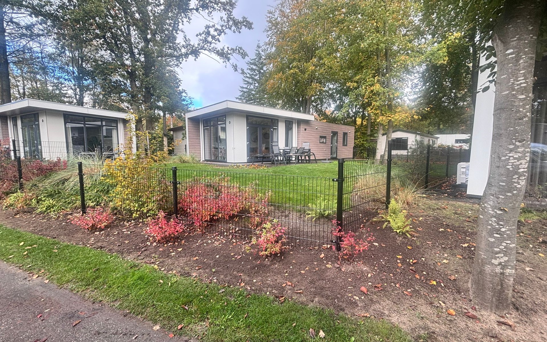 De rust op het park. Omheining bij de accommodatie i.v.m. onze hond. De inrichting is sfeervol.