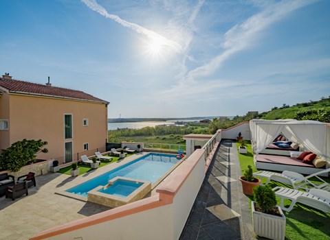 These two apartments are located in a family house. Since the apartments are located next to each other, they can be combined well. Travel together with a friendly family or another couple, in any case you will enjoy your privacy here. You have at the apartments beautiful terraces with panoramic views of the bay, the nearby islands and the sea, which is about 300 m away. The historical old town of Trogir is about 1.5 km away - visit the Unesco World Heritage Site. The city offers attractions and entertainment for all ages.