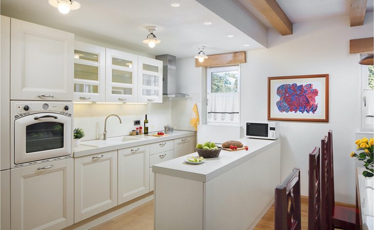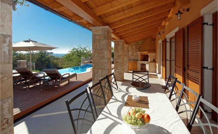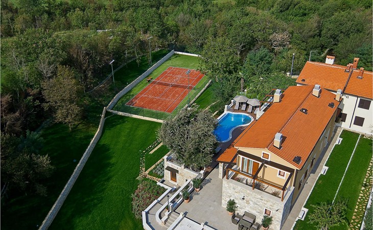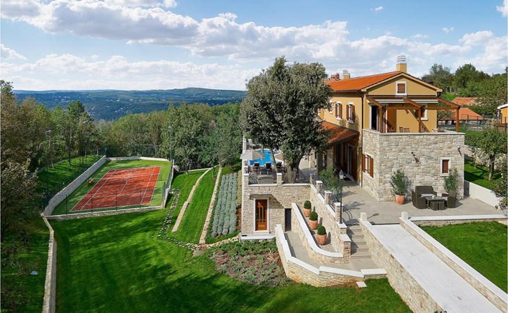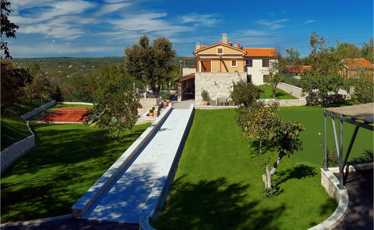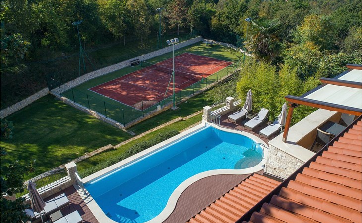 If you are active and like sports, there are two private play areas in the excellent garden: a lighted tennis court if you want to play tennis at night, and a small golf practice area. Relax and rejuvenate next to the beautiful pool with plenty of sun loungers and parasols for the perfect summer. The villa is surrounded by a spacious, well-tended garden with special stone elements. In the enclosed part near the entrance of the villa, there is a small yard with chickens and rabbits as well as organically grown fruit and vegetables. Villa Vlastelini I offers the ideal vacation spot for 8 people in breathtaking nature. Villa Vlastelini I is located in a village near Labin in the eastern part of the Istrian peninsula. The villa is only 5 km away from the first beaches in Rabac and Duga Luka. The crystal clear Adriatic Sea and the beautiful pebble beach await you there. Labin and Rabac are larger tourist centers and offer a selection of restaurants, cafes and stores. Labin is a small but charming and historically rich town from the Middle Ages, situated on a hill above the enchanting Kvarner coast. Here you can explore the history and admire cultural and architectural monuments. If you like art and history, be sure to visit the Baroque palace of the Battiala-Lazzarini family, which is now a museum. Enjoy romantic walks through steep alleys where you can admire several palaces and visit art galleries. In summer, you can also attend jazz and classical music festivals. Relax in a cozy café and taste famous fish specialties in a local restaurant. The former fishing village of Rabac is located on the coast and offers beautiful beaches and various sports and entertainment facilities. If you want to explore Istria, you can also visit Opatija (55 km) or Pula (40 km), two beautiful tourist towns by the sea, rich in culture and history. Opatija is the pearl of the beautiful Kvarner region. Discover Kvarner and its surroundings, be it by walking along the coast or admiring the islands. If you want to enjoy the nature of the islands and the clear sea, visit the enchanting nearby island of Cres or the island of Krk, a little further away, but no problem if you are traveling by car.