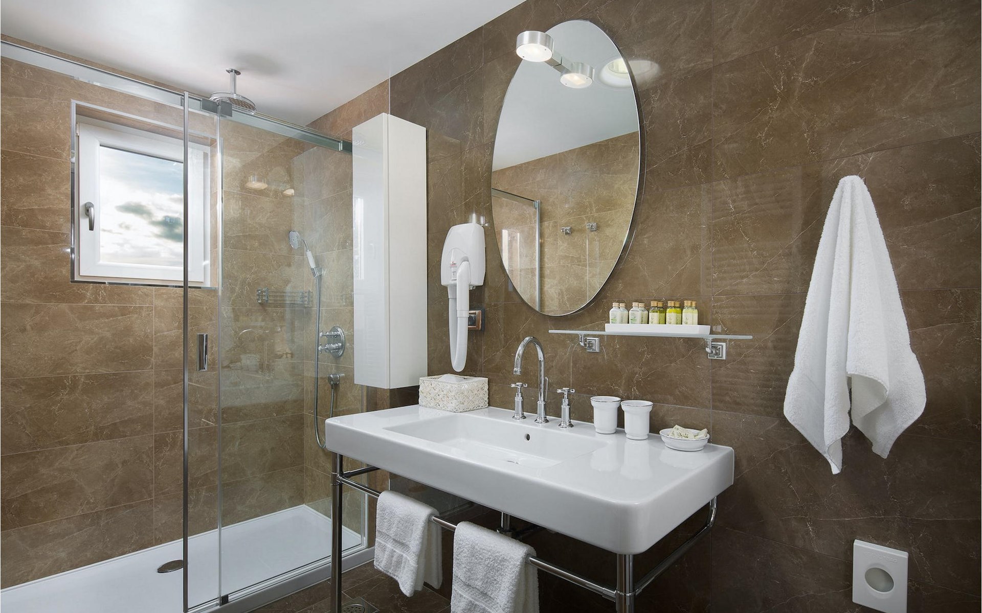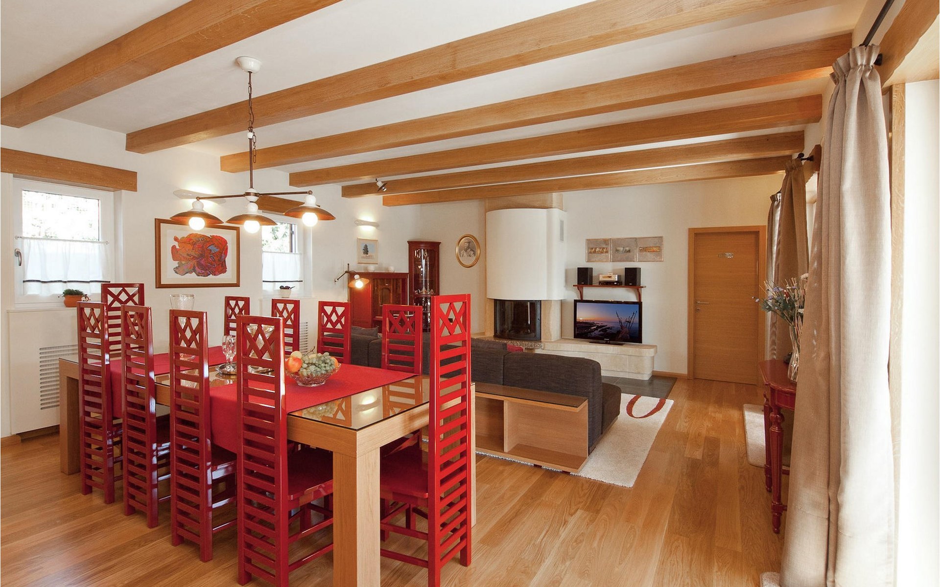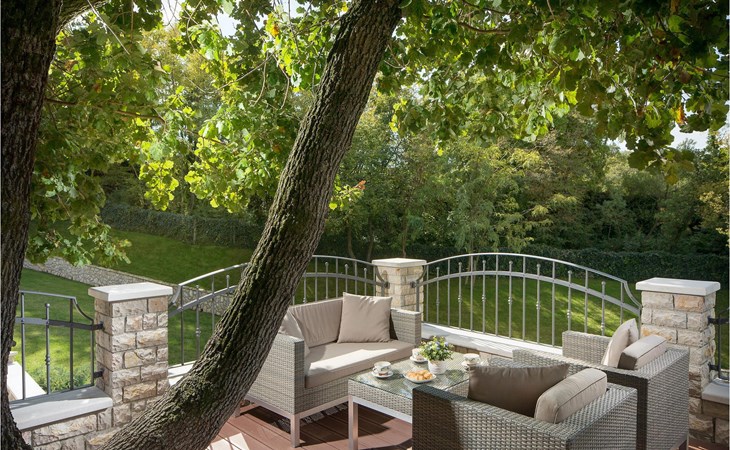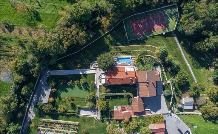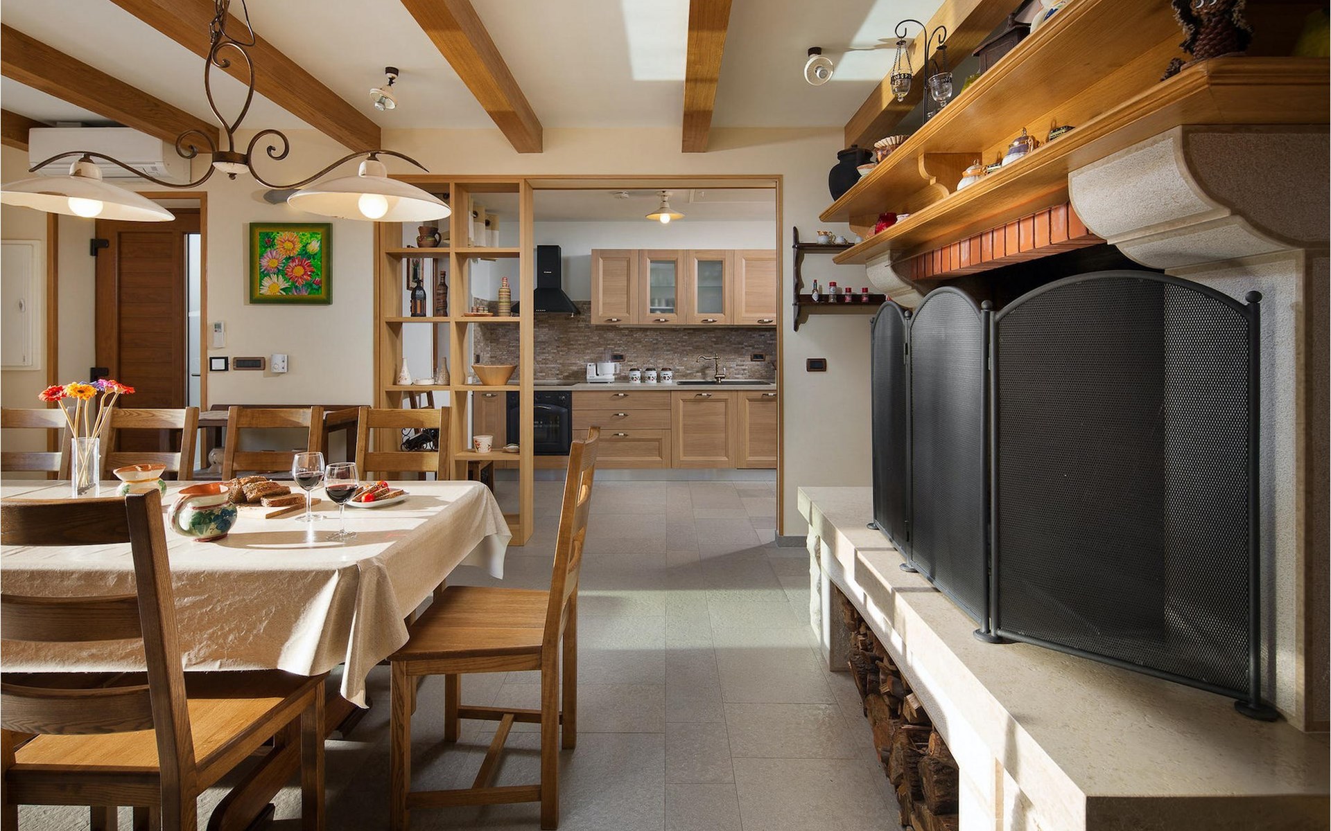 On the first floor is a stunning living area with a fully equipped open concept kitchen. The wonderful living room offers a cozy family corner with a fireplace for cold days and air conditioning for warm ones as well as a Play Station game console for children. On the first floor there is another room with a double bed and an en-suite bathroom. If you like to cook and try new specialties, this villa offers a unique spacious tavern with a fully equipped kitchen. Ideal for long evenings with the family, meals fresh from the fireplace but also quiet coffee breaks overlooking the inviting pool. On the second floor there are 3 spacious, stylishly furnished bedrooms with double beds, air conditioning, central heating, TV and en-suite bathrooms with underfloor heating. 2 rooms have access to 13 m2 terraces with seating and beautiful views of the garden and the green, mountainous surroundings.