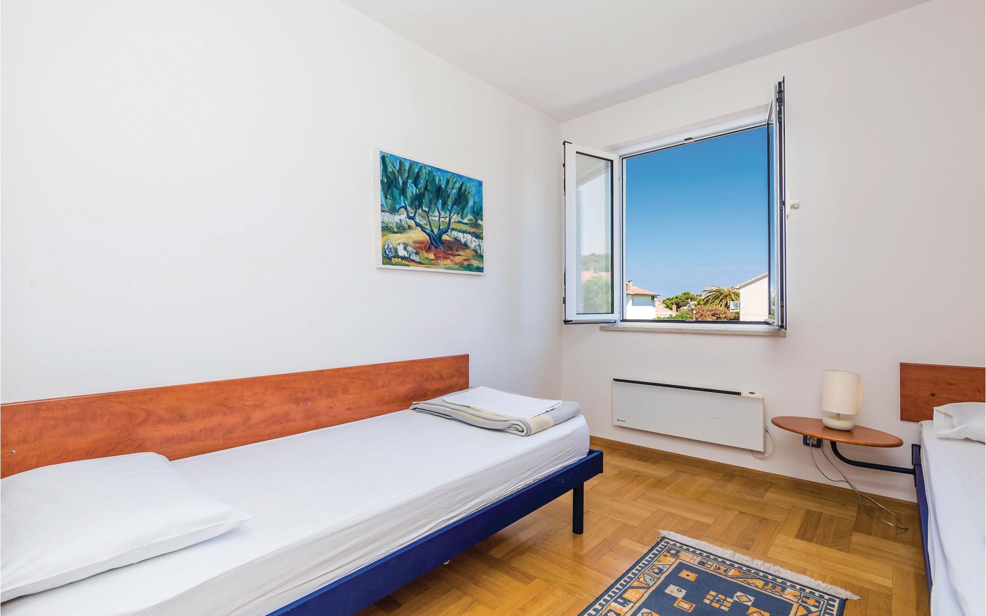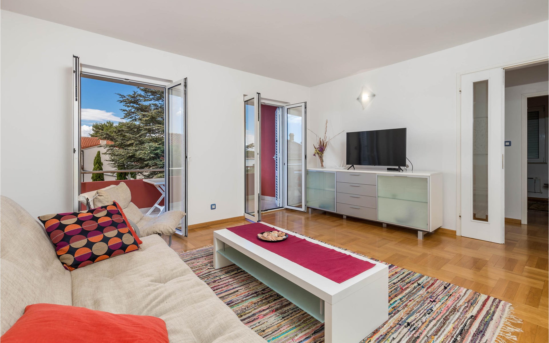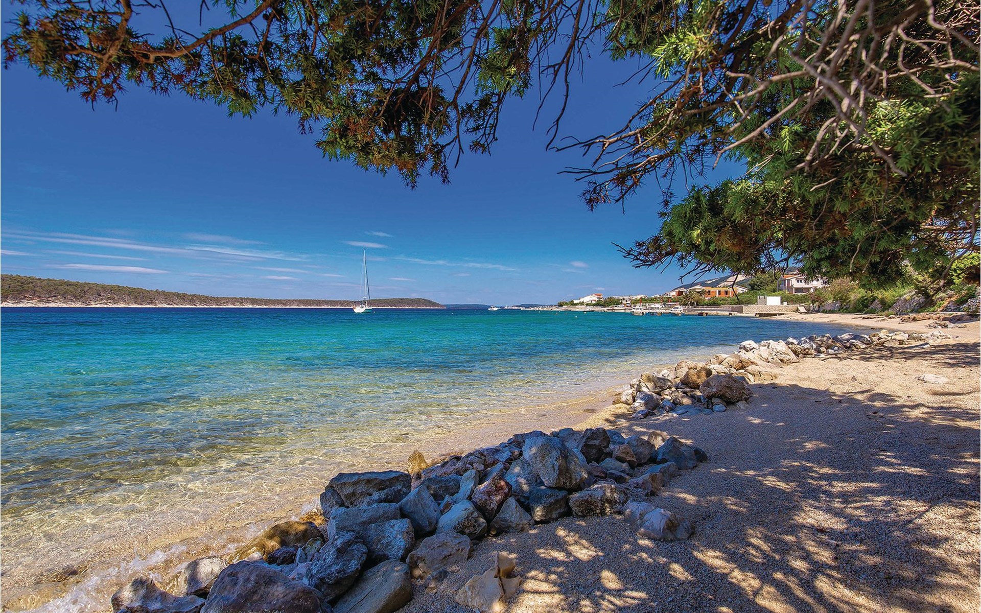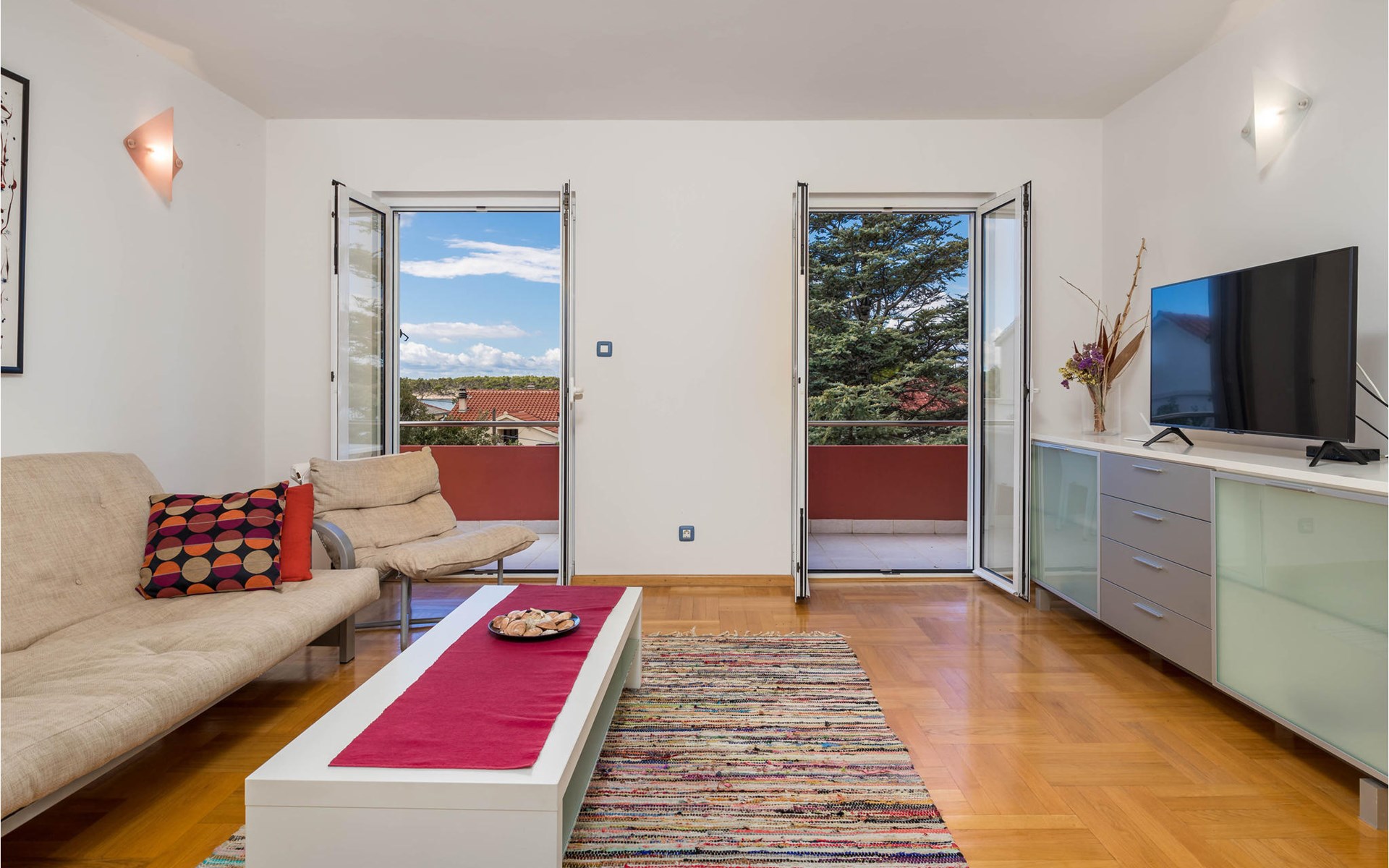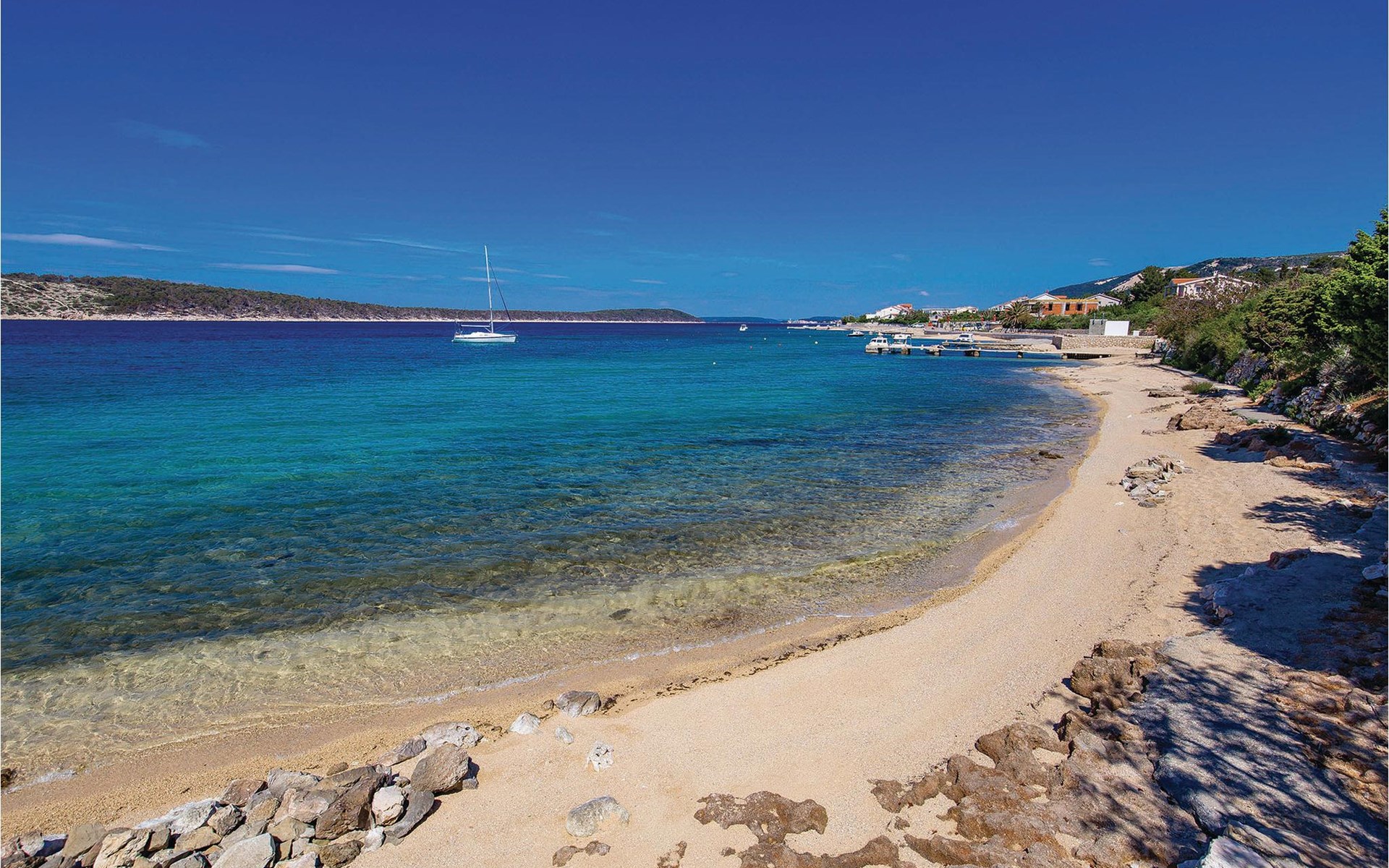 Beautifully and comfortably furnished apartments in Barbat on the island of Rab. CKR215 offers a beautiful sea view from the terrace, while CKR216 has a view of the countryside. Barbat is known for its pebble beaches, traditional fishing, excellent restaurants and small shipbuilding. The place has its own holiday called Karmenica, which is celebrated on July 16 with a rich gastronomic offer. It is connected to the town of Rab by a six-kilometer-long coastal promenade, ideal for morning cycling or running. The island of Rab has a beautiful landscape with long, pleasant walking paths and beautiful, varied beaches. If you want to experience the most beautiful sandy beach in the region, you will find it in Lopar. The island is also known for its gastronomic offer, especially fish specialties, among which Kvarner shrimps stand out. We definitely recommend you to try the Rab cake, a specialty of the island. In summer there are numerous cultural and sporting events. Notable are Rapska Fijera, a three-day festival at the end of July, and the Rab Music Festival. The island is also known as a paradise for boaters and has a rich historical heritage. In the town of Rab you will be amazed by the old town with four bell towers. Not only the long coastline, abundance of natural plants, fertile fields, vineyards and olive groves, but especially the people make this island desirable as a modern tourist destination all year round.