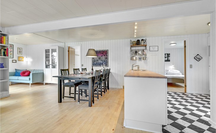 In the 1st row and with direct access to the beach at Ristinge, which is one of the best swimming beaches on Langeland, lies this beautiful wooden holiday home. The house is situated on a beach plantation plot. There are wooden floors in the kitchen-living room and in the 3 bedrooms of the house. In summer you can play mini golf and shop at the kiosk on the nearby Campingplads, which is only 460 meters from the vacation home. The beautiful surroundings invite you to take long walks in nature. Langeland means time with the family, fishing settlements and a beautiful, varied landscape. Here in the south of the island, in addition to the golf course, there is ien rich bird life and two areas with wild horses. The southern tip of Langeland with Dovns Klint and its special nature is worth a visit at any time of the year.