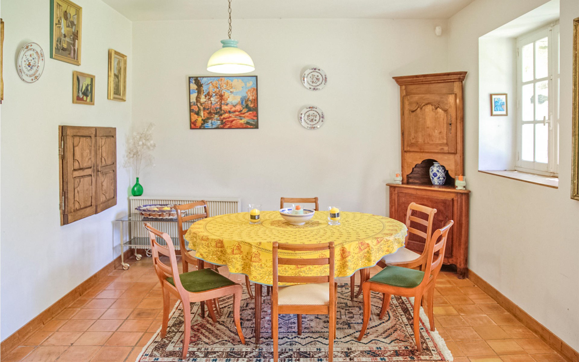 You will feel especially at home in this former homestead, built of battle stone and wood in 1850. The atmosphere of this house is personally decorated and offers you an antiquely furnished living space, with heartfelt details and striking color details. Make yourself comfortable in the cozy space, enjoy your time together with your family or girlfriends while having meals together, or relax and let your evenings come to an end. In the outdoor area there is a beautiful green garden and a heated and screened pool without any view. Here you can have breakfast together either in the shade or in the sun, get a tan or invest your time in an exciting novel.