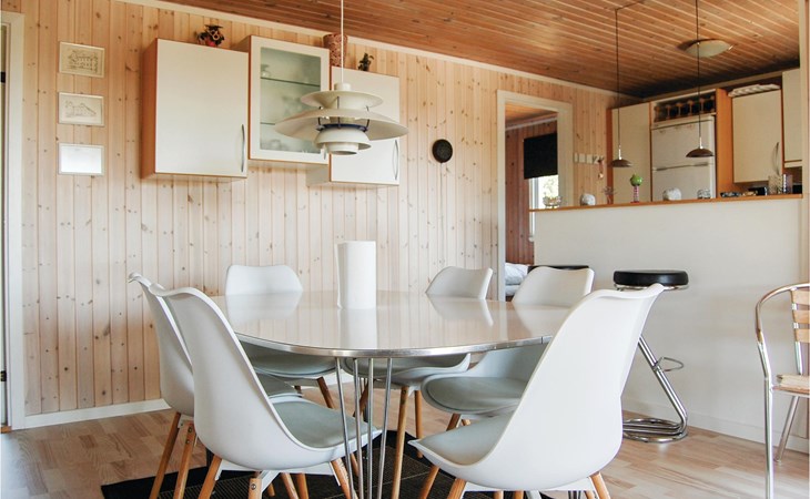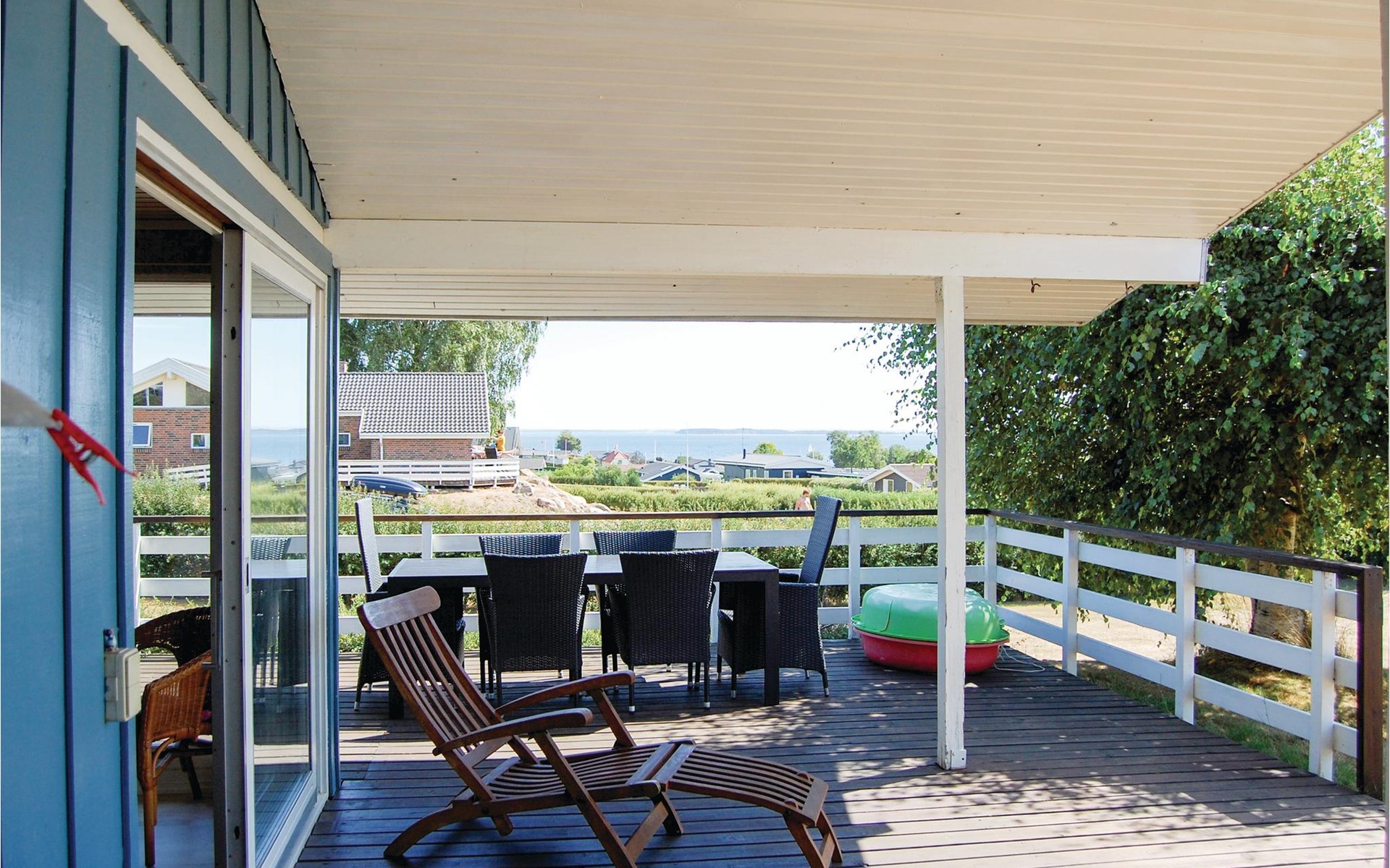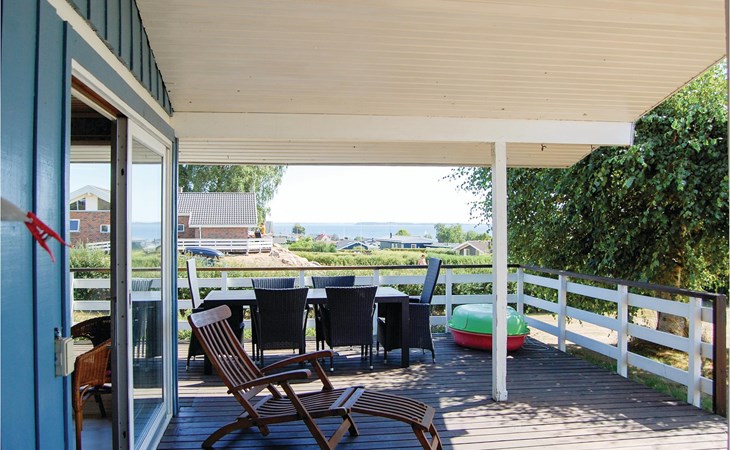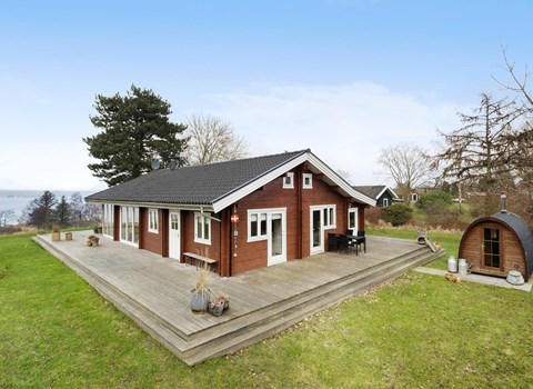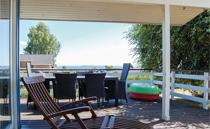 In the quiet cottage area of Hejlsminde lies this beautiful vacation home. You have a large plot and from the house you have the most beautiful panoramic view of the water. The partially covered terrace faces southwest, you also enjoy the view here with a barbecue meal. The Scandinavian style furnishings fit well into the open plan solution. Also from the living room you have an unobstructed view of the water. There are three good bedrooms in the house. Hejlsminde on the Little Belt is located in a beautiful area with sea, forest, beach and sights. In the town there is a nice marina and often you can enjoy the view of Funen. Here is also the beautiful nature area Skamlingsbanken. Christiansfeld is known for its honey cake, tiled stoves and salamis. In Kolding and its surroundings there is a lot to experience for all ages. If you are an art and culture enthusiast, visit the Trapholt Art Museum and Koldinghus. Via the pedestrian zone you can reach cozy cafes and the shopping center Kolding Storcenter. Take the opportunity to power shop. Also make a detour to the play park Legeparken, here is much free.