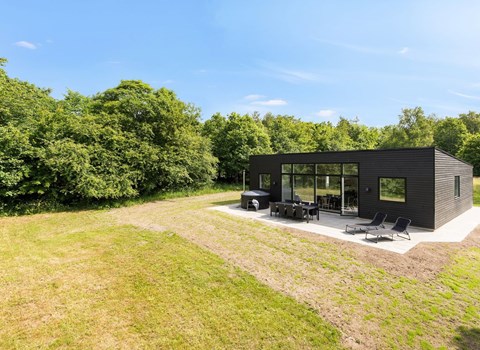 Imagine arriving at this architecturally impressive holiday home in Ebeltoft Strand. The special design with a skylight panorama in the centre of the house floods the bright and friendly rooms with natural light. The comfortable interior, including a well-equipped kitchen, invites you to linger. Relax in the sauna or whirlpool bath in the evening and enjoy cosy evenings in the large, open-plan living room. An outbuilding with an inviting activity room and a surrounding terrace, as well as a playground in the garden, offer entertainment for young and old.
