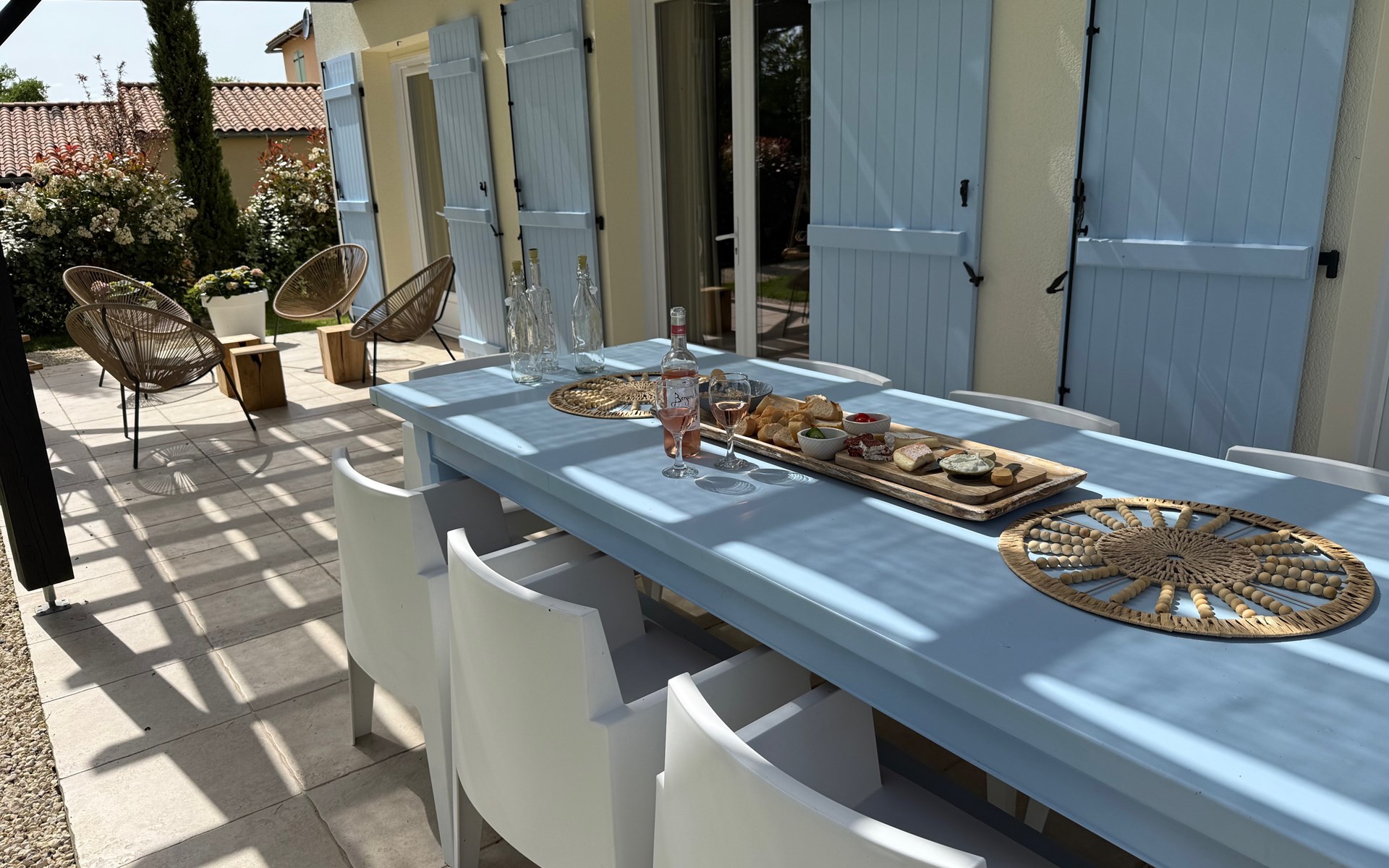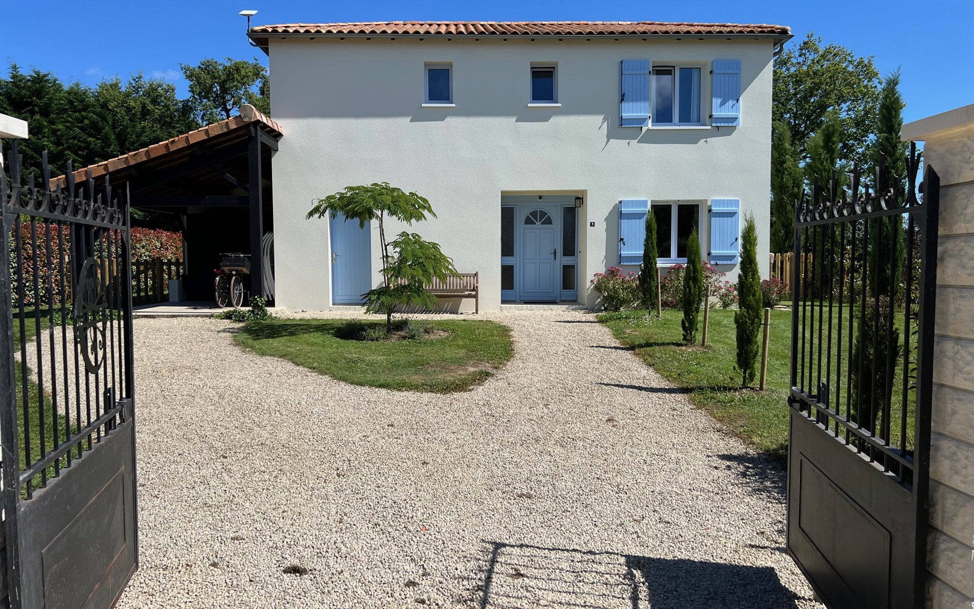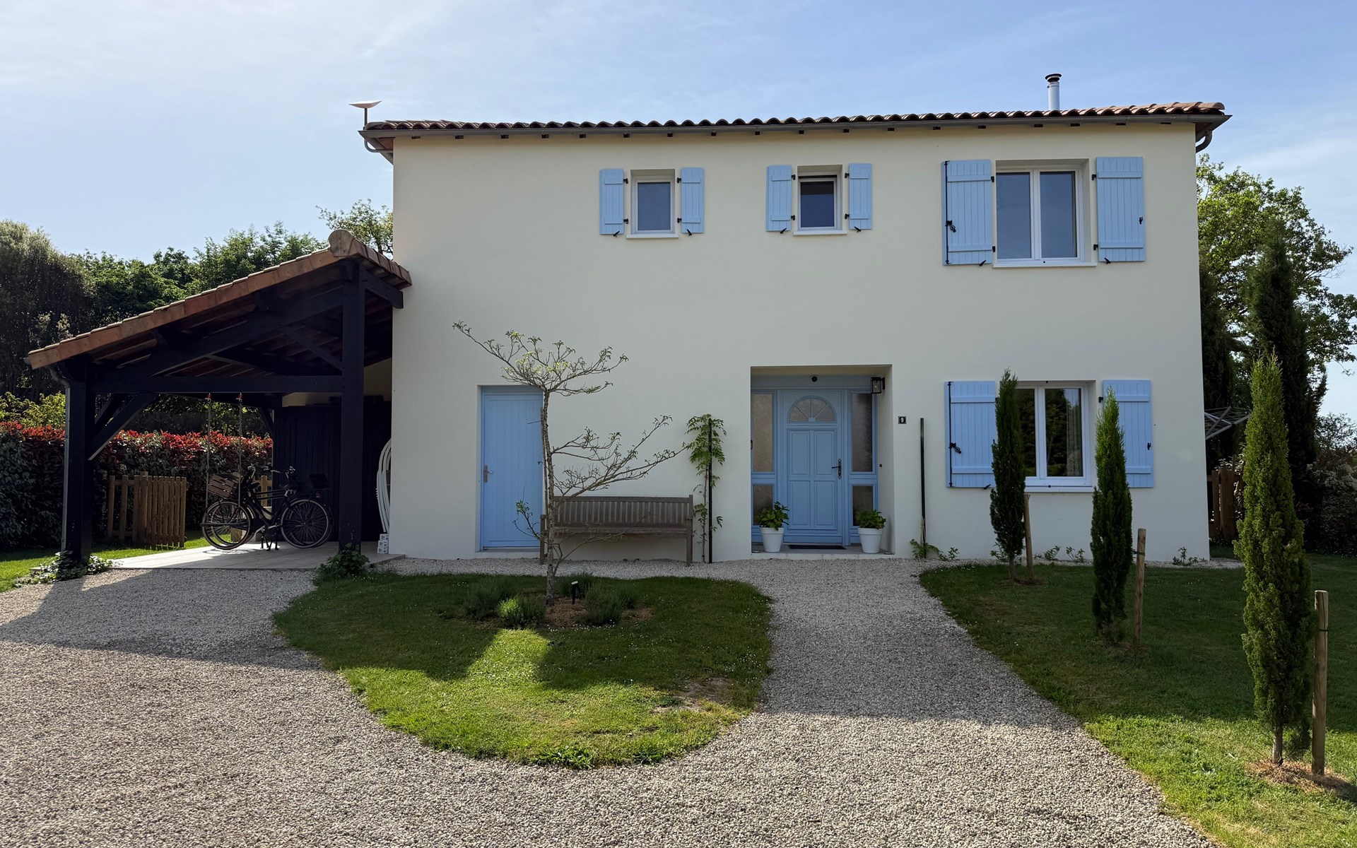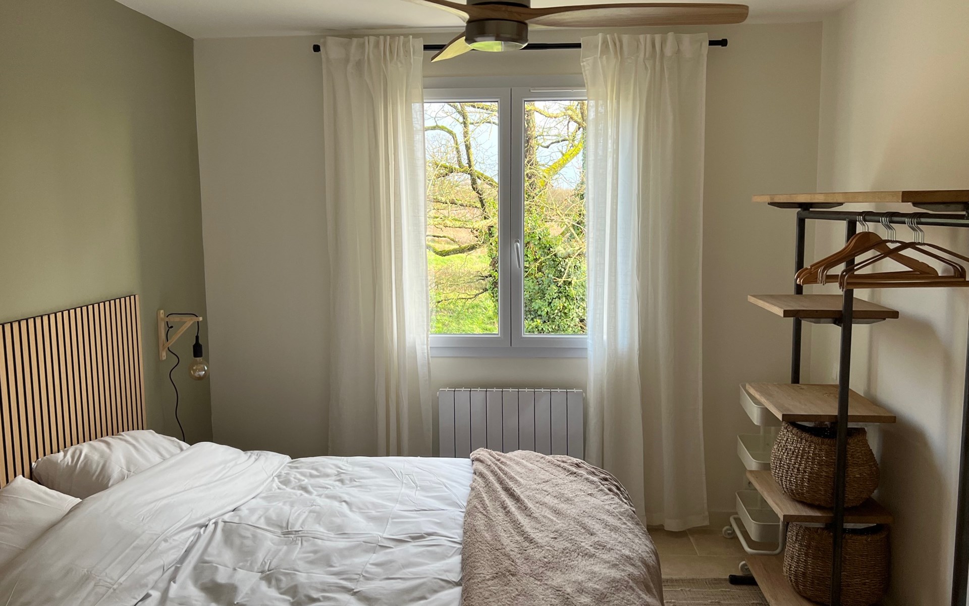 Light, modern and comfortable! The newly built villa of 140 m² with a large garden, spacious terrace with dining area offers peace and tranquility amidst the greenery of the French countryside. The villa has 4 bedrooms, 2 bathrooms and can comfortably accommodate up to 8 guests. The indoor dining area has a large wooden table with 8 chairs. The outside dining area on the terrace has a large table with 8 chairs. The spacious living room is tastefully decorated and filled with lots of natural light. All windows have wooden shutters outside and curtains inside. Parking spaces for several cars are available in front of the house.