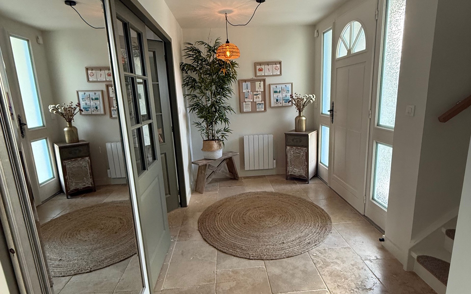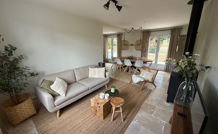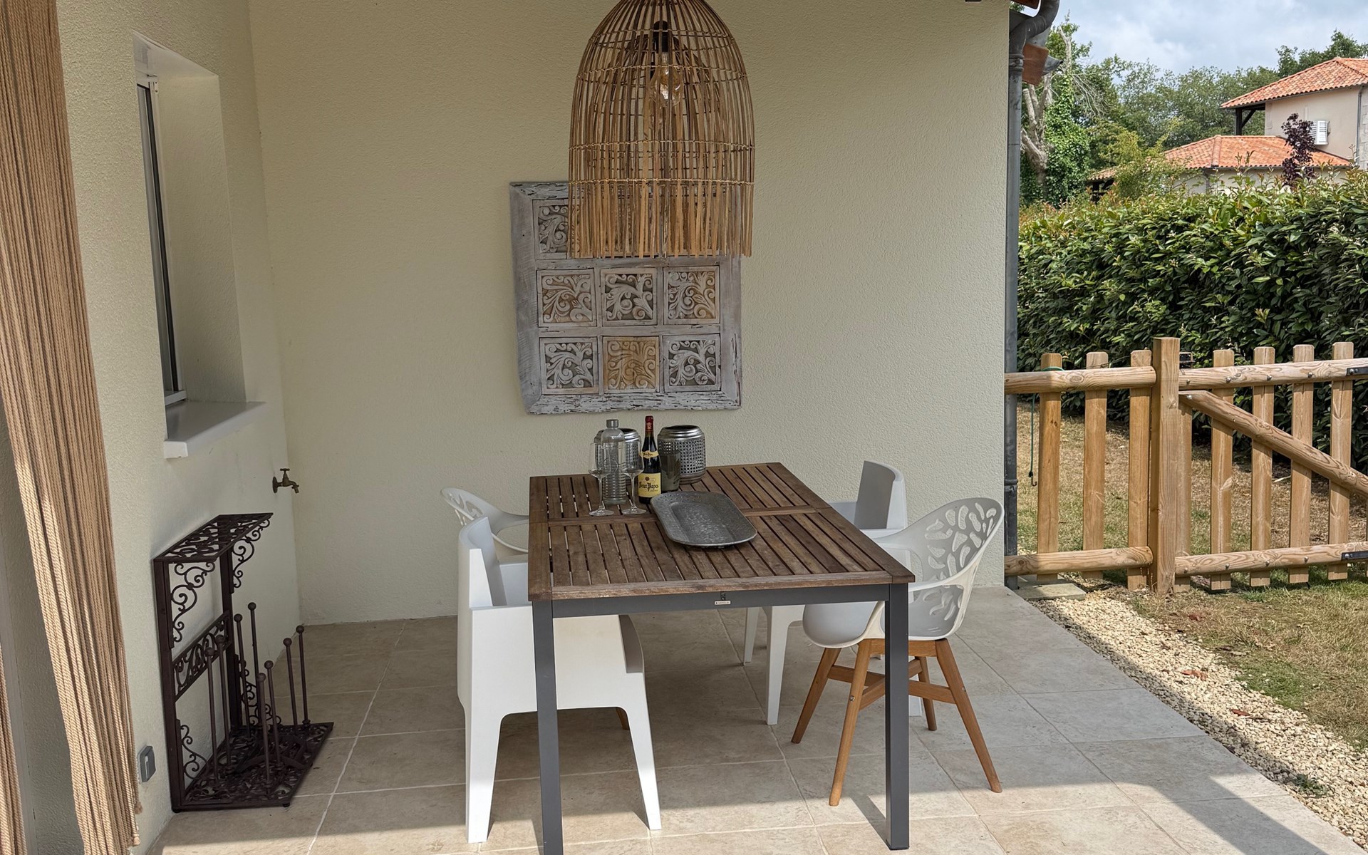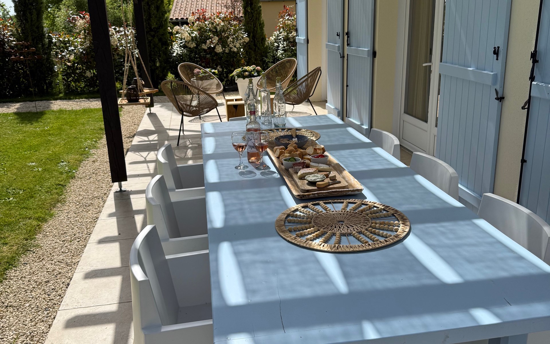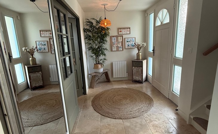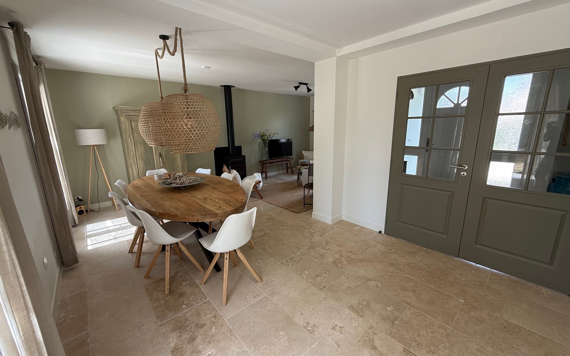 Light, modern and comfortable! The newly built villa of 140 m² with a large garden, spacious terrace with dining area offers peace and tranquility amidst the greenery of the French countryside. The villa has 4 bedrooms, 2 bathrooms and can comfortably accommodate up to 8 guests. The indoor dining area has a large wooden table with 8 chairs. The outside dining area on the terrace has a large table with 8 chairs. The spacious living room is tastefully decorated and filled with lots of natural light. All windows have wooden shutters outside and curtains inside. Parking spaces for several cars are available in front of the house.