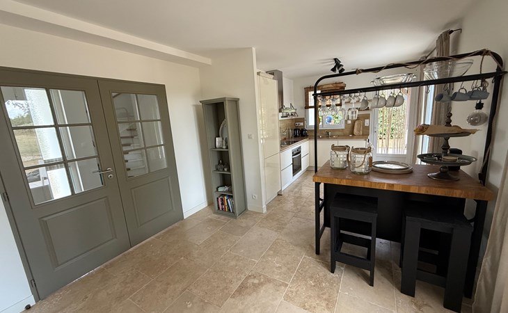 Comfortabel, groot huis met luxe keuken en wasmachine in bijkeuken.
