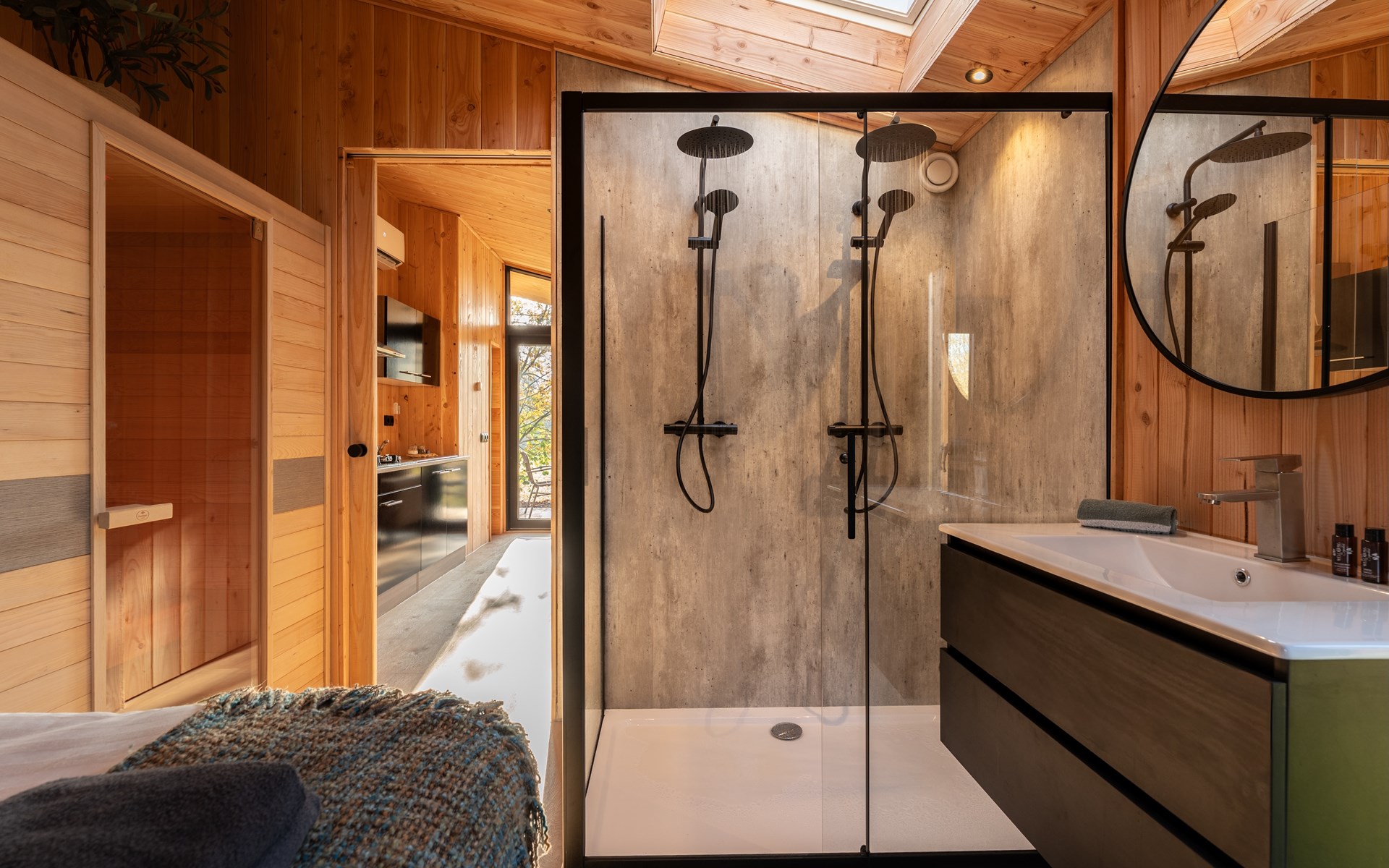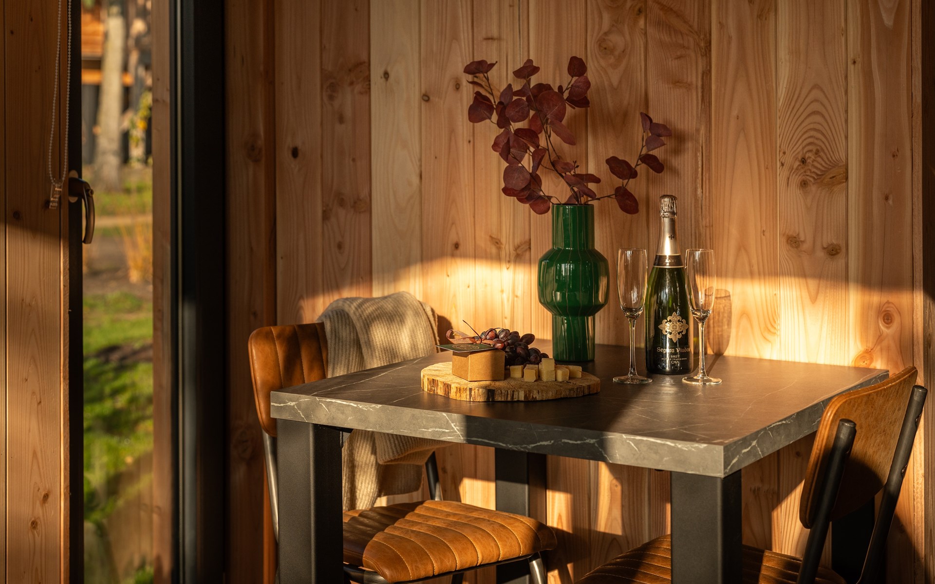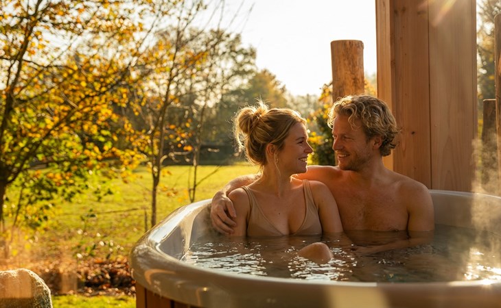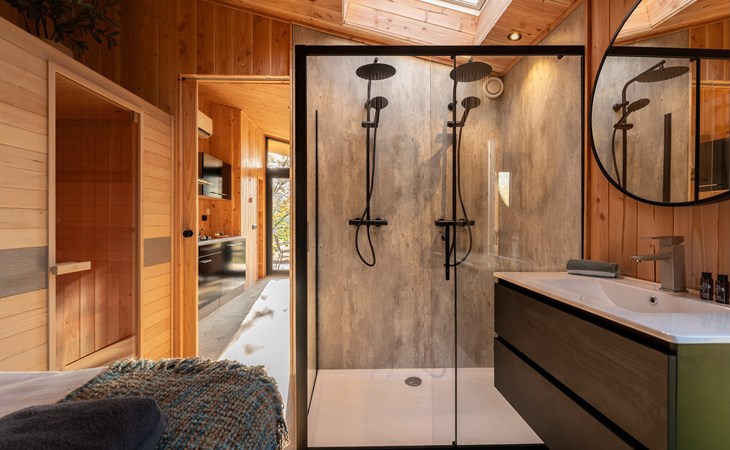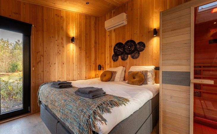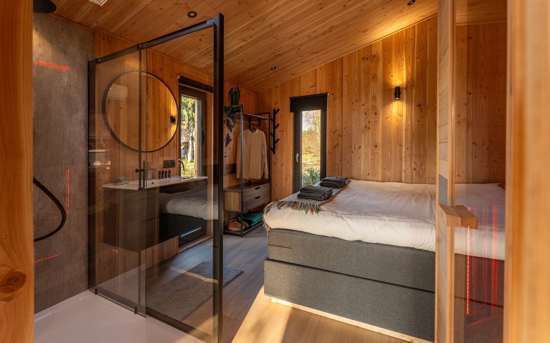 Enjoy pure relaxation together in this exclusive wellness lodge for two. Everything here is designed to offer peace, comfort and the feeling of truly getting away from it all. The lodge features a private hot tub, an infrared sauna and a modern bathroom, allowing you to create your own wellness ritual at any moment of the day.