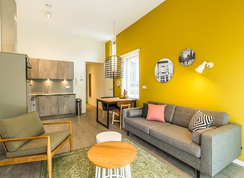 Tiny House 'La Mouette' has a beautiful natural warm atmosphere thanks to the wooden panelling around the accommodation. You enter through the sliding doors on the terrace into the cosy living room with a comfortable sofa. Right next to it is the compact dining table that seats two. The kitchen is in the passageway to the bedroom and is fully equipped with an induction hob, oven, dishwasher, fridge-freezer, toaster, Nespresso, filter coffee machine and kettle. The bathroom is opposite the kitchen and has a shower, a washbasin with a cupboard and a toilet. The bathroom has infrared heating, and the rest of the accommodation has underfloor heating. There is a wardrobe next to the bathroom. The bedroom has a double bed with two separate mattresses (80x210cm), hanging bedside lamps, blackout window coverings and a wardrobe with hanging and shelf space. From the bedroom, you have a beautiful view of the surrounding forest and dunes. The private outdoor terrace (18m2) has 2 chairs and a lounge sofa. You can also charge your electric bikes here. Good news for cycling enthusiasts! We have a convenient bike storage facility for you at the accommodation.