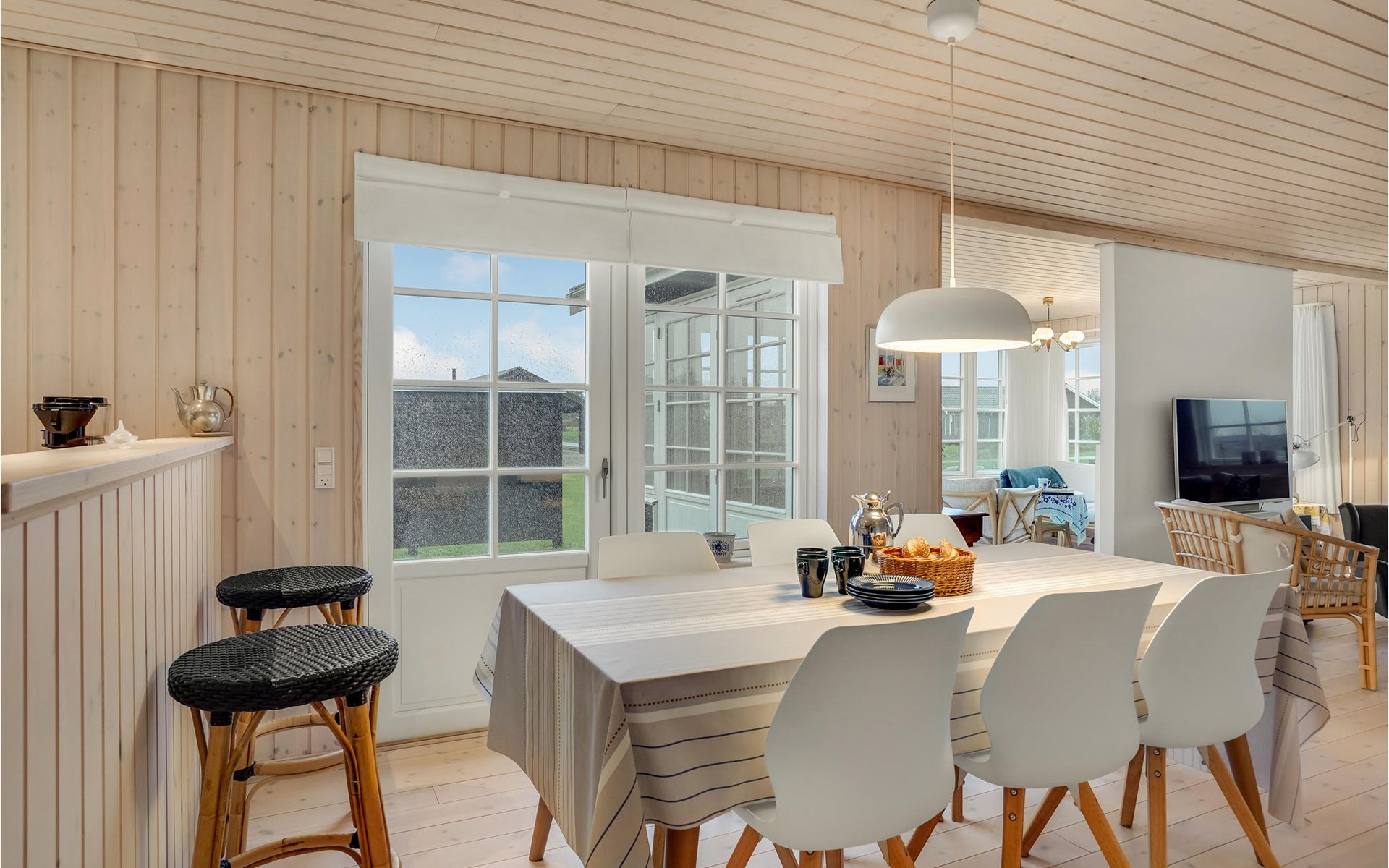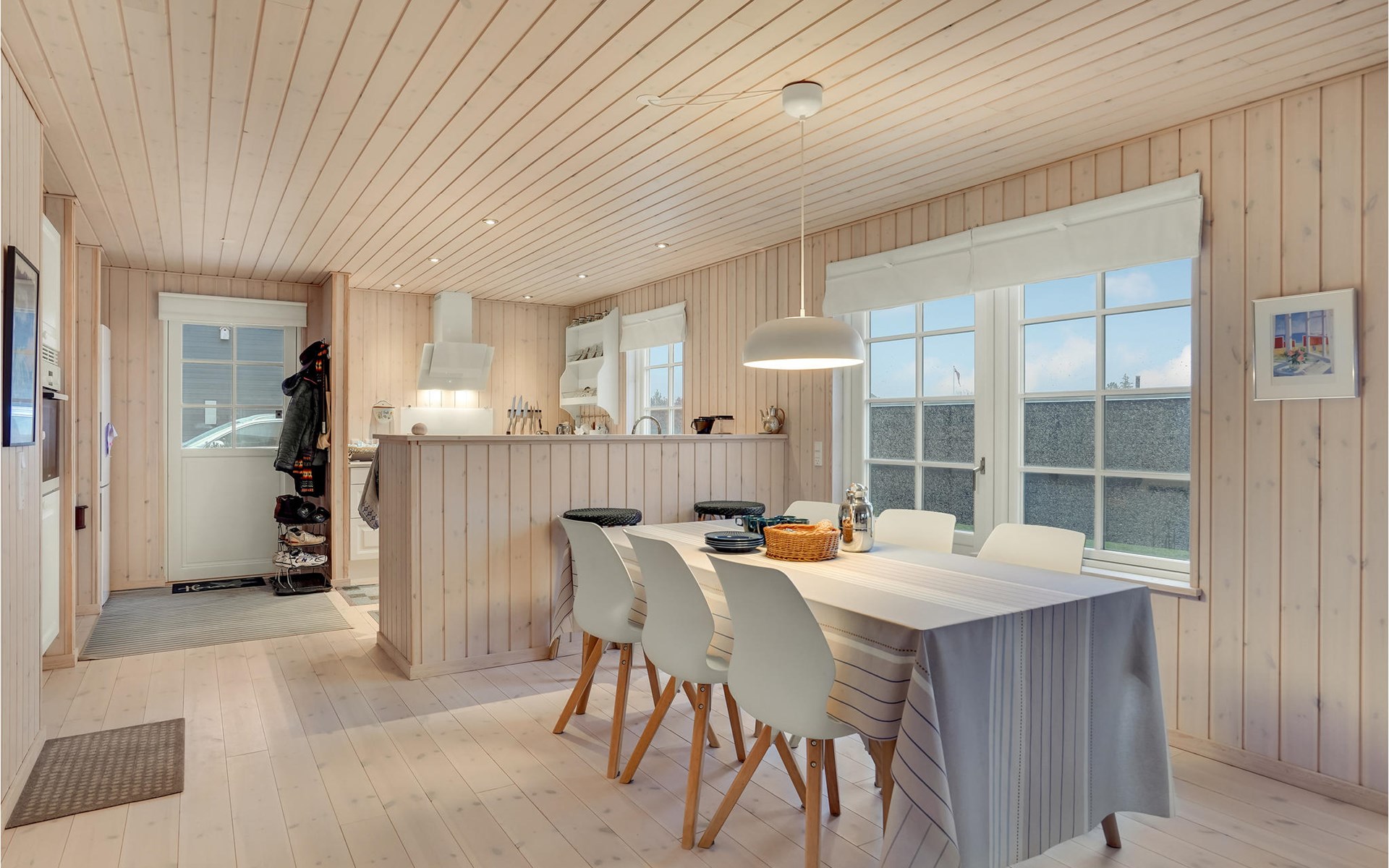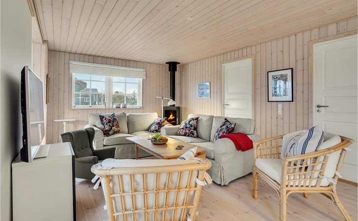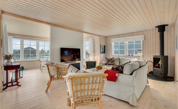 Just a short walk from Kelstrup Strand, this light-filled vacation home welcomes you.