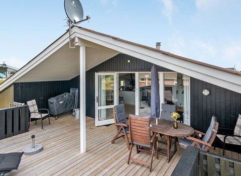 An attractive cottage with open kitchen-living room and wood-burning stove, from which you can step out onto the beautiful sun terrace.