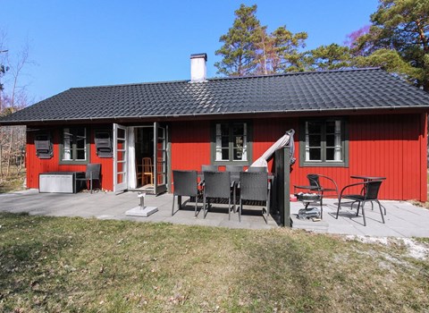 Nestled in an idyllic natural setting and just a few steps away from the sandy beach, this stylishly furnished log cabin invites you to enjoy a relaxing holiday. Enjoy the elegant blend of rustic charm and modern comfort over harmonious meals at the cosily lit dining table, listen to the gentle crackling of the fireplace while reading, perfect your piano skills or spend time with your loved ones during a cosy games evening.
