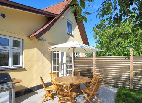 Close to the water and in a quiet street at Hejlsmindes cottage area lies this cozy cottage. The house is bright and friendly furnished in Scandinavian style. The living room and kitchen are connected and there are two bedrooms, each with a double bed and an extra place to sleep on a good sofa bed. Outside is a nice, partly covered terrace where you can enjoy the bright evenings and sunny days.