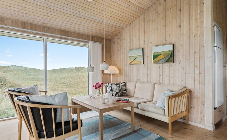 The holiday home's sheltered terrace is the ideal place to enjoy the fresh air and the beautiful surroundings. With direct access to the dunes, you can take long walks and explore nature. The sea, which you can see from your holiday home, is just a short walk away and invites you to take a refreshing dip. The lively town of Løkken, known for its iconic white bathhouses, offers numerous cosy cafés, restaurants and shops. For the more adventurous, there are opportunities for surfing and kitesurfing.