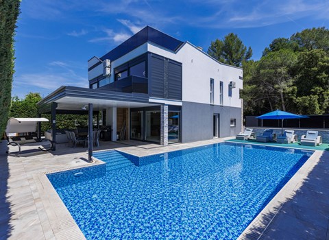 Treat yourself to a wonderful break in this luxurious holiday home with pool, wellness oasis and sea view.