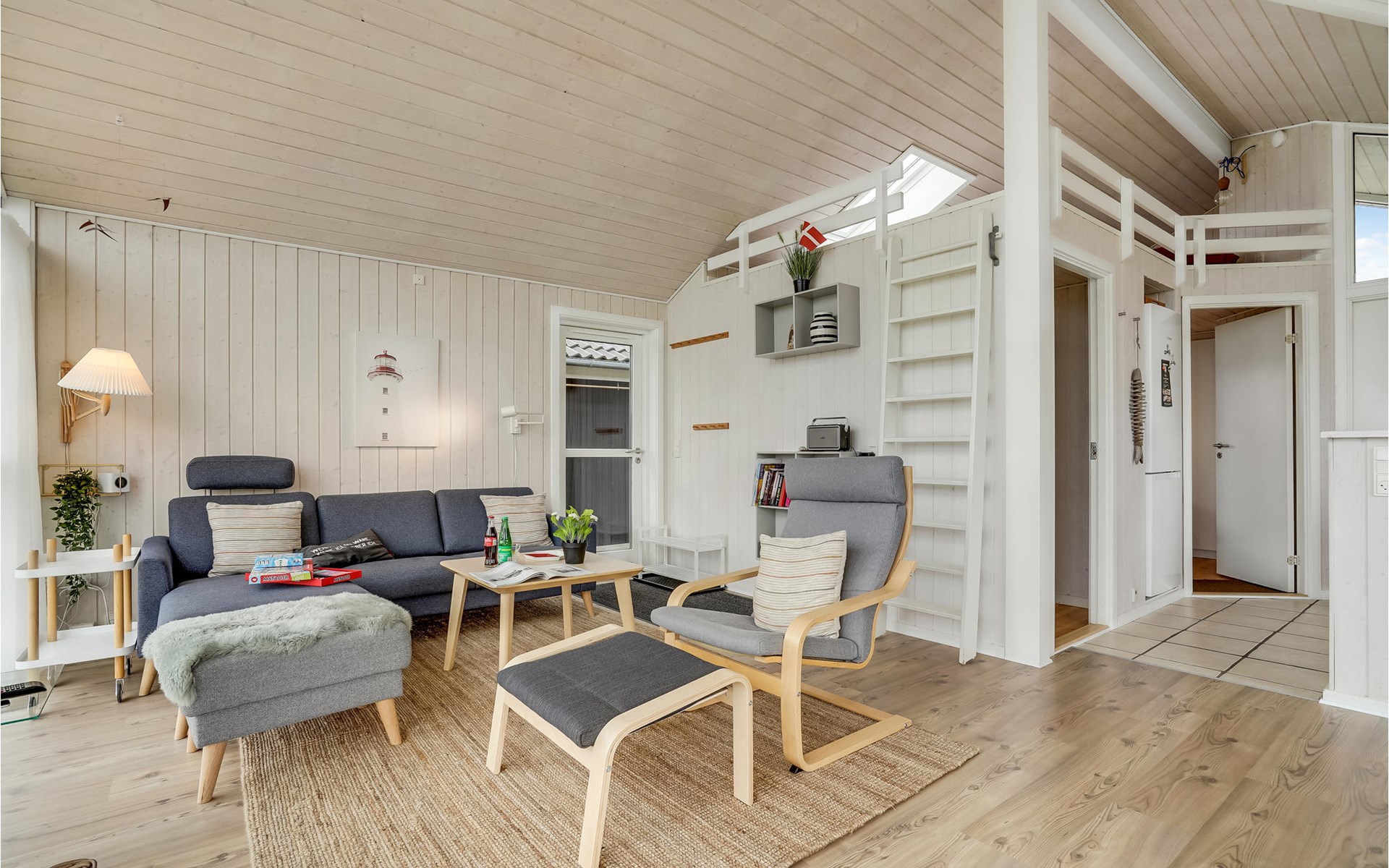 Inside your vacation home you will be well taken care of thanks to the fireplace, large window front with a view of the water, as well as cozy sleeping accommodations under the peaked roof. The house is ideally suited for a stay with children.