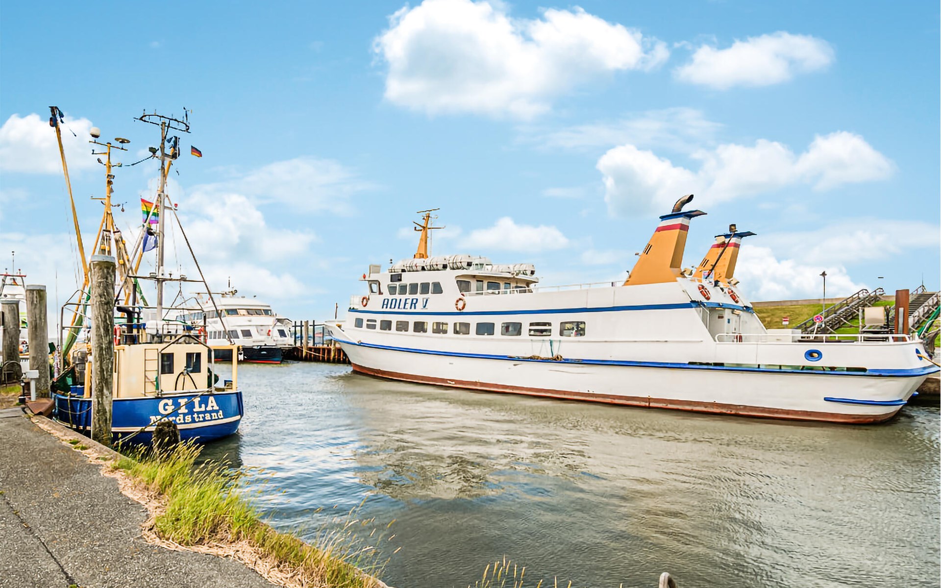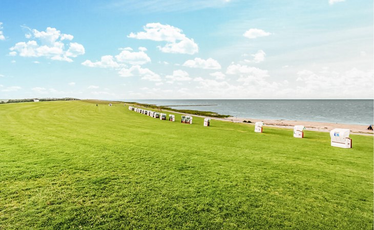 Stroll to the beach, Nordstrand offers many bathing opportunities on the region's green beaches, including the salt marshes at Süderhafen harbour or the guarded Holmer Siel bathing beach. There is also a small fishing lake just a few metres from the flat door. Whether long walks on the beach, cycling tours through picturesque villages or exploring the Wadden Sea National Park, there is plenty to discover in the surrounding area. The apartment is an ideal starting point for exploratory tours. Take trips to St. Peter Ording, Husum or Friedrichstadt. The neighbouring islands are also easy to reach from Nordstrand, visit Sylt, Hooge, Amrum or Föhr.