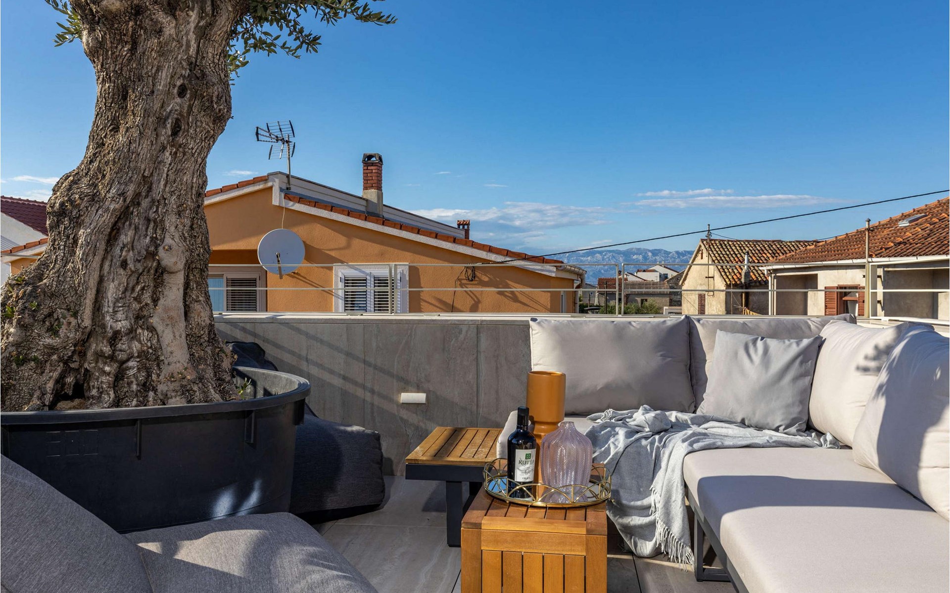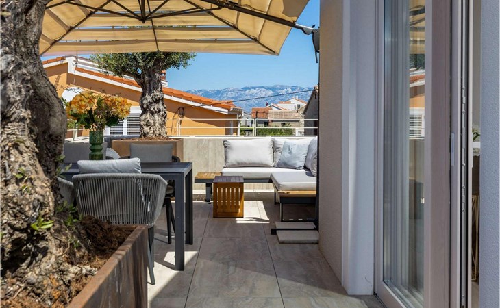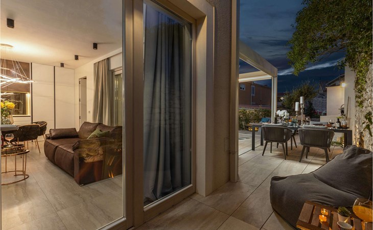 Villa Aenona was built in a contemporary construction style in 2022, offers its guests 120 m2 of living space, and the total area of the property is 149 m2. A maximum of 6 people can stay in the villa, while the optimal number is 4. The villa is only 70 metres away from the nearest sea, while you can swim at Kraljičina beach, 300 metres from the villa.