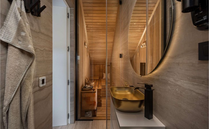 Additional features of the villa include a washing machine and an iron, a separate toilet in the sauna, and if children are coming with you, you can use a feeder and a cot.