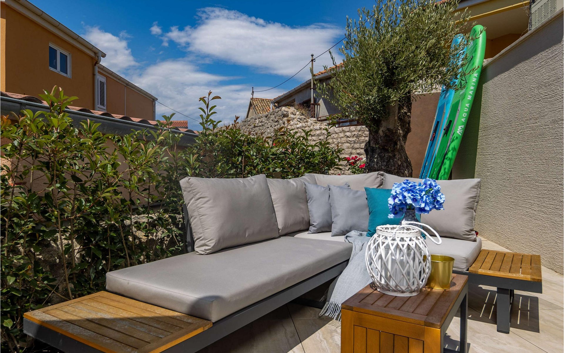 The beautiful Villa Aenona is located in the royal city of Nin, which is 16 km away from the city of Zadar. Escape from the hectic everyday life and relax together with family and friends in a villa with a sea view in a quiet part of the city. The specificity of this villa is that in its yard and at the entrance there is a wall from the 16th century.