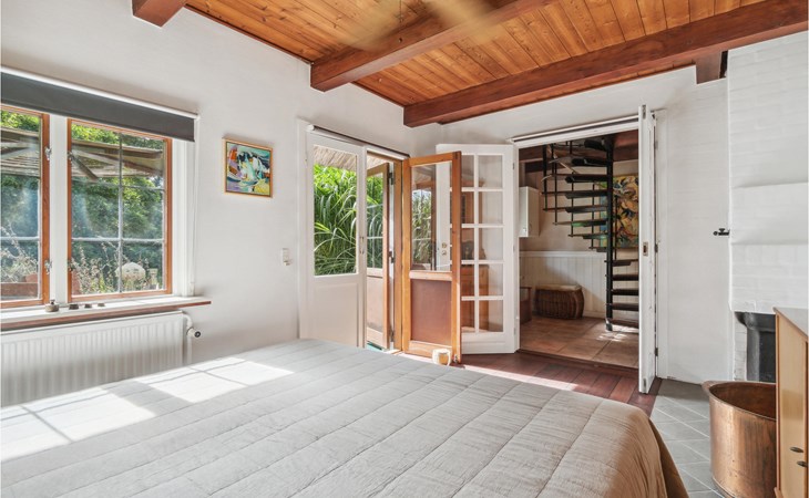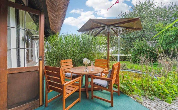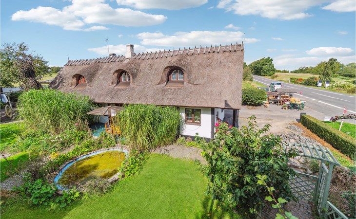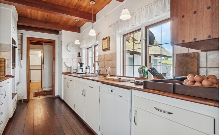 Look forward to a lovely vacation in this beautiful thatched half-timbered house just outside Nexø in the countryside. The vacation home is located on the first floor and offers some cozy rooms with some nice details, not least the attractive wooden ceilings. The bedroom with its fireplace is particularly atmospheric.