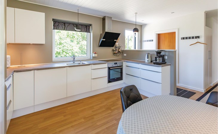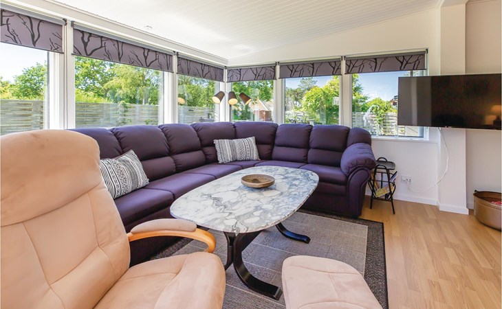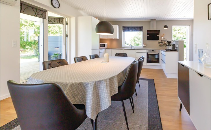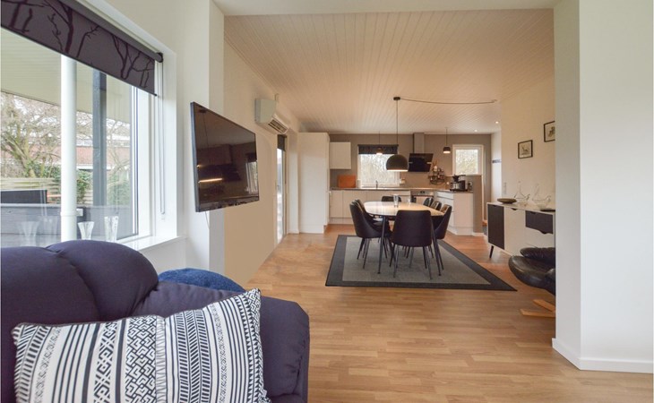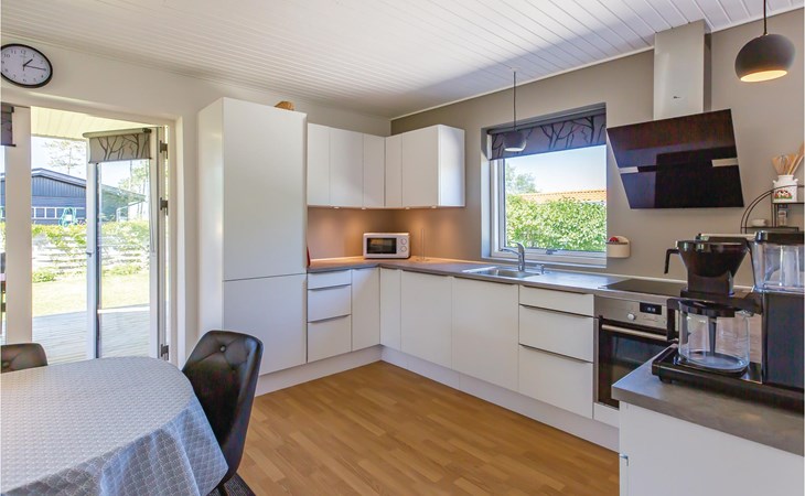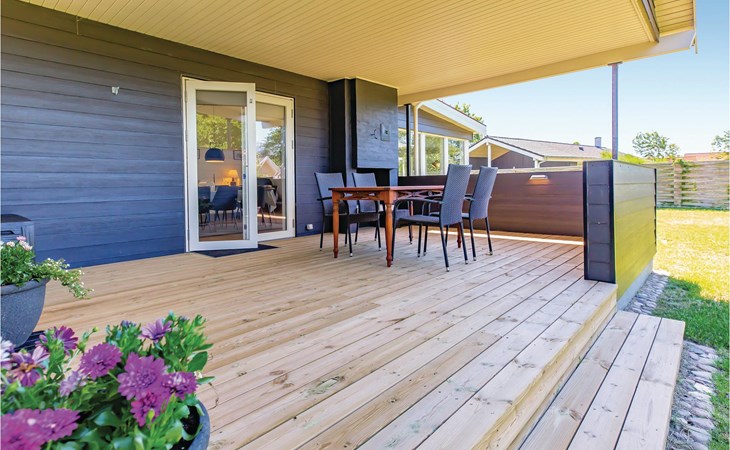 Cozy and charming cottage, located only 150 m from the coast. From the living room you can access a beautiful covered terrace with fireplace, from the kitchen you can access the large open terrace where you can fully enjoy the sun. Children have also been thought of with a swing, slide and sandbox - the garden is fenced, you can let the kids play here without worry. Please note: the fireplace in the living room can not be used.