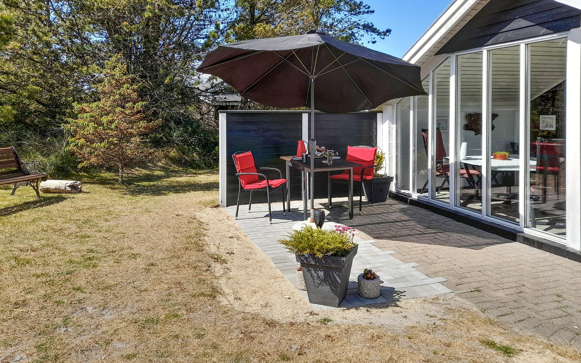 Make yourself comfortable with a cool drink on the covered terrace and enjoy your freshly brewed morning coffee on the bench.