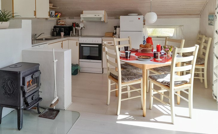 This holiday home is situated on a hilly dune site in the heart of Vorupør, which is part of Thy National Park. This is the ideal place for a relaxing and varied family holiday far away from the stresses of everyday life. A bright and tasteful atmosphere awaits you inside. The house invites you to try out new recipes together in the kitchen, enjoy cosy film evenings and, last but not least, organise exciting games evenings.