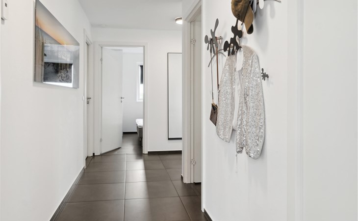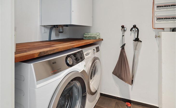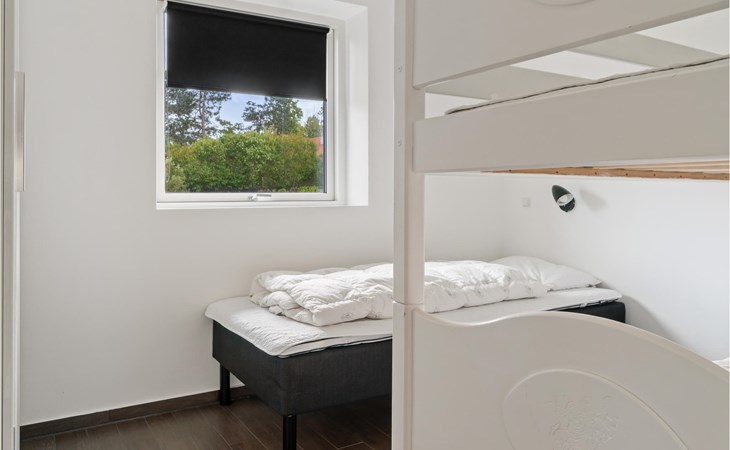 From the living room you can access the garden and the large terrace that surrounds most of the house, so you can find sun, shade and shelter throughout the day as required. The large property is fenced so that you can let your children and dogs run and play freely. In the evenings, thanks to the elevated position of the house, you can enjoy a unique sunset and the view of the Lammefjord while you make plans for the days ahead.