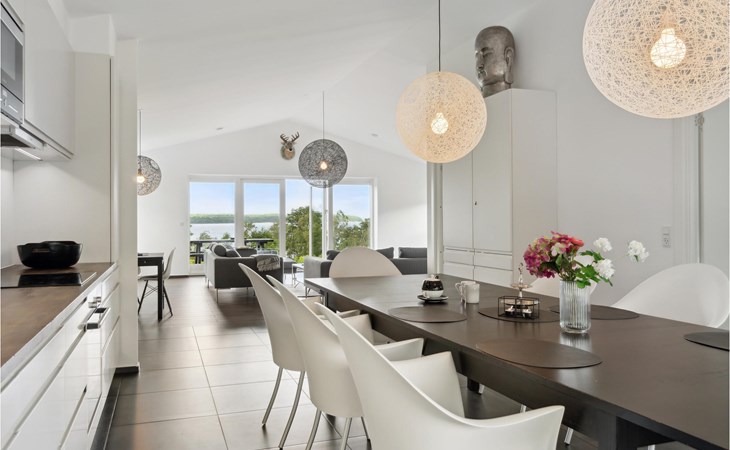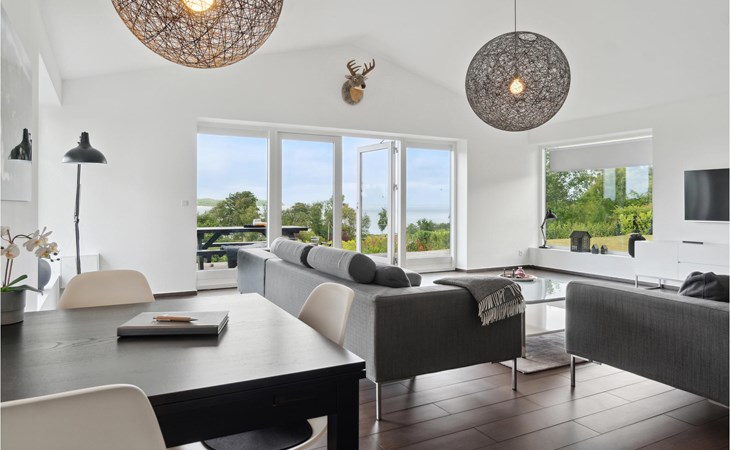 Look forward to a vacation in absolutely beautiful surroundings in this modern house with great wellness and panoramic views of the Lammefjord.