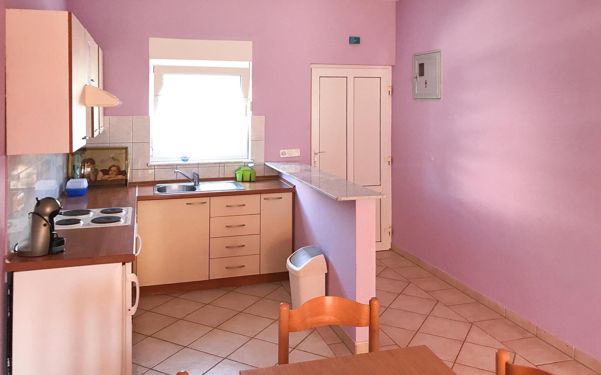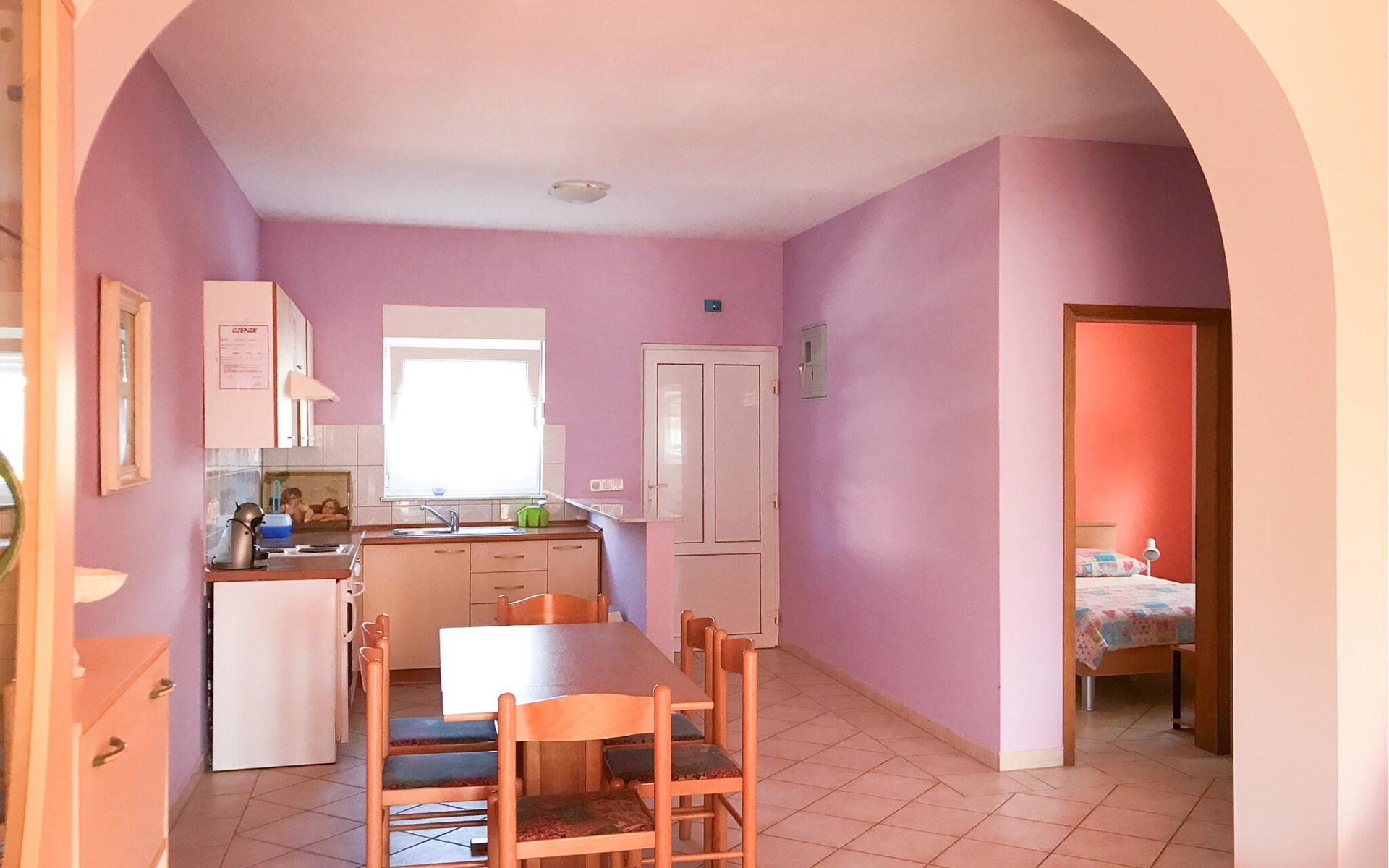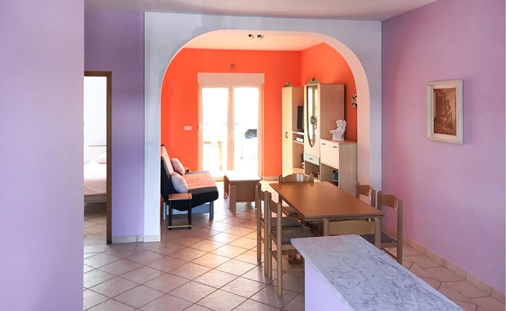 Located on the island of Vir, this apartment is perfect for a relaxing holiday. A bright living room with sofa and direct access to the terrace and a practical kitchen will make you feel right at home. Relax here while listening to music, spend an afternoon playing cards or try out new recipes while cooking together.