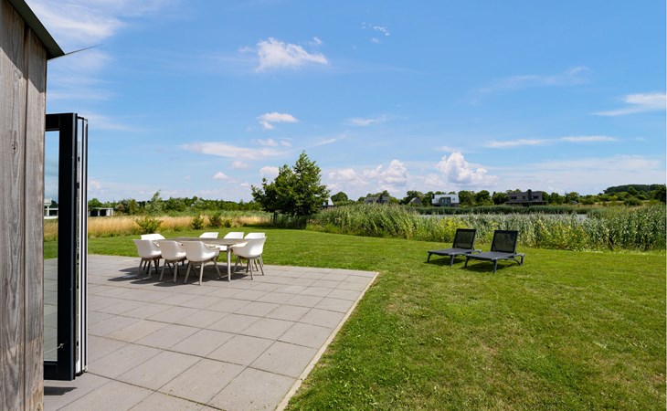 This modern and luxurious villa close to the beach offers you the perfect place to unwind. The stylish furnishings and light, maritime ambience create a calm and inviting atmosphere. Here you have plenty of space to feel at home with your family or friends. Come together in the open-plan living room, which successfully combines the kitchen, dining and living area and invites you to cook, eat or relax together. The open terrace offers a fantastic view over the water. The bathrooms have a rain shower.