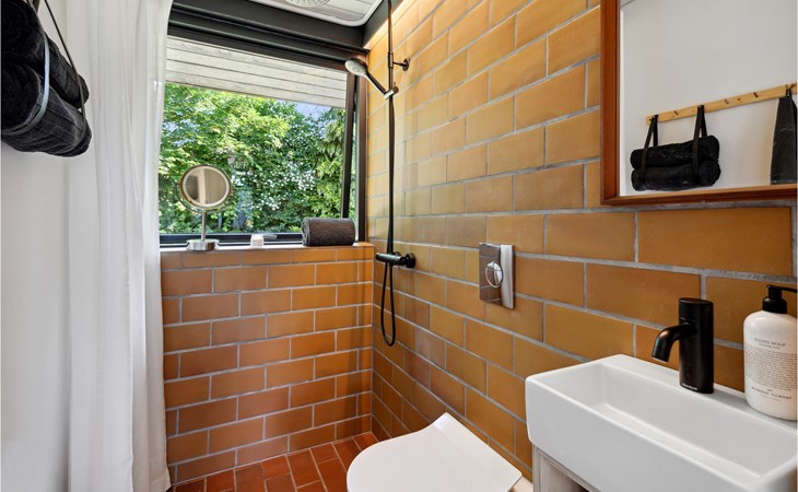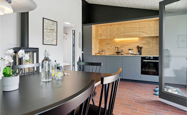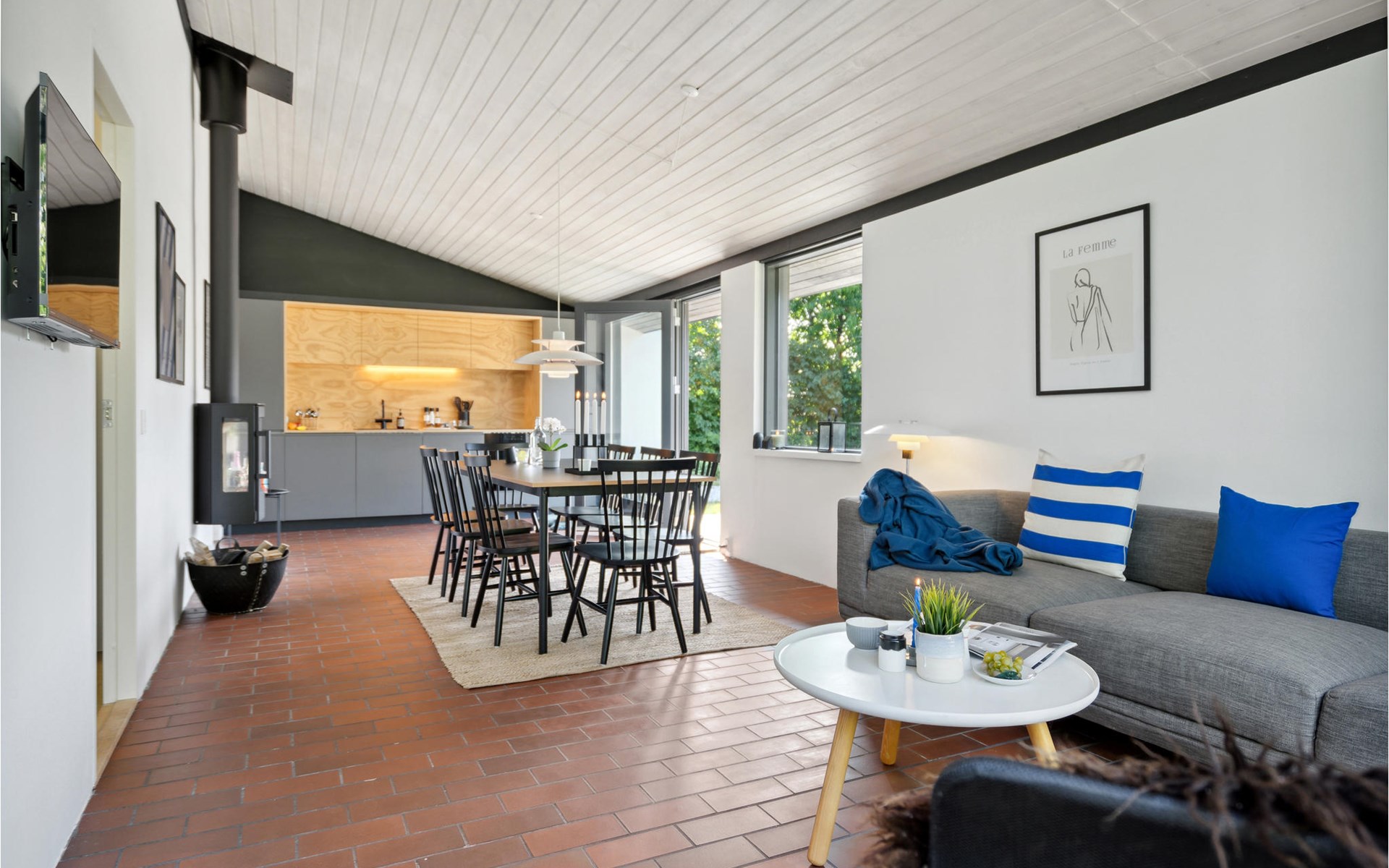 In the charming fishing village of Norsminde, this beautiful vacation home welcomes you. A high-quality interior awaits you here, which makes a bright, tasteful impression. Prepare your delicacies in the well-equipped kitchen and spend sociable evenings in the bright living room with delicious meals and nice conversations. From here you can reach the garden with outdoor shower and space to play and relax via the terraces.