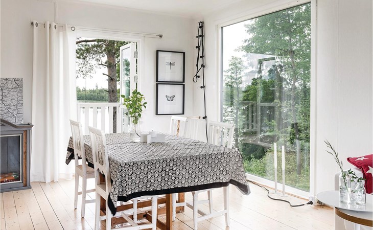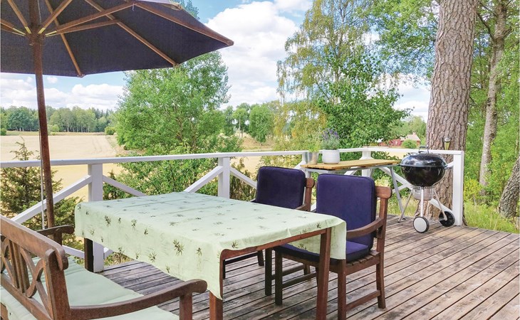 Nice cottage in Norra Sandsjö, near Bodafors. The house is well maintained and shows a good standard. Its location is fantastic, because there is a panoramic view of the lake Sandsjön. Sandsjön is connected with Uppsjön. Outdoor vacation living is possible on several altans. Hilly cultivated landscape with pastures and fields. For fishing go to the nearby lake Nömmen. Also only a few kilometers away is an inn in Sandsjöfors, where you can have a good lunch. Worth seeing is the Äventyrhuset Boda Borg in Sävjö. The well-preserved wooden town of Eksjö is 30 km away. Lake Uppsjön, 5 km south of Bodafors is a destination for birdwatchers.