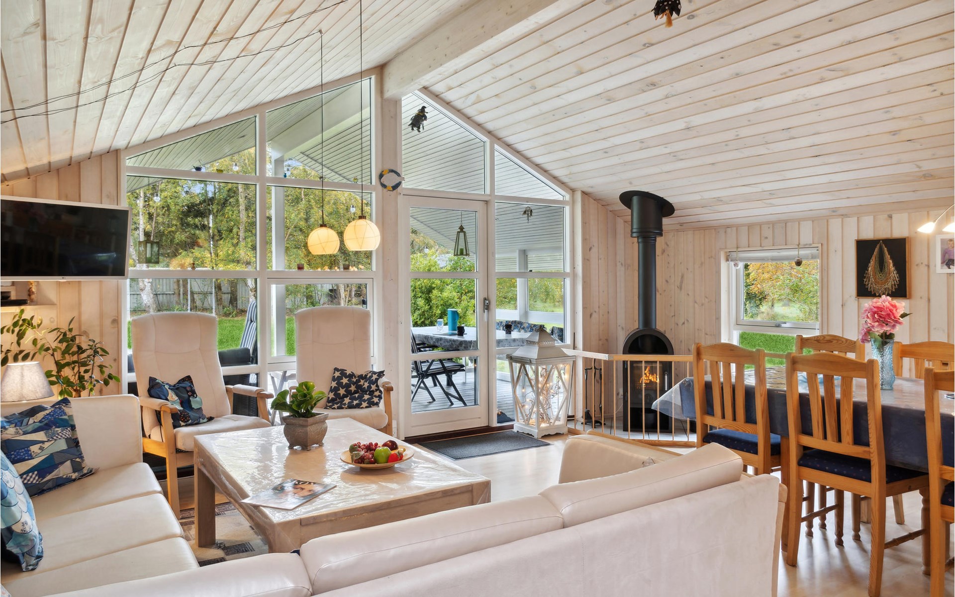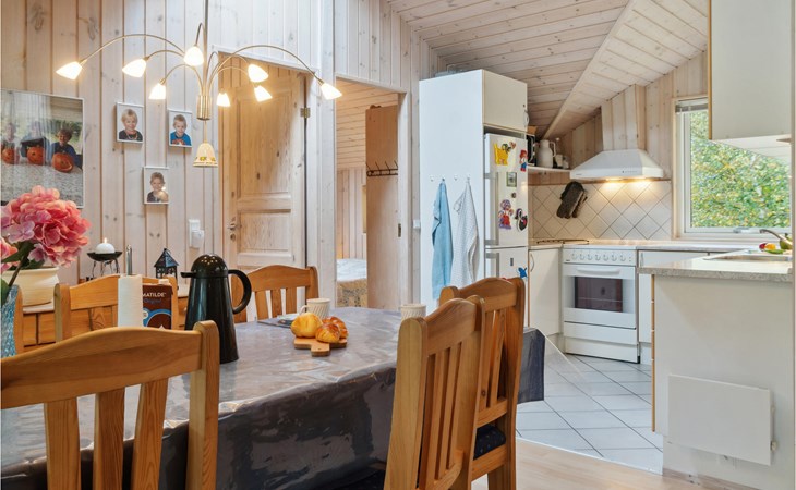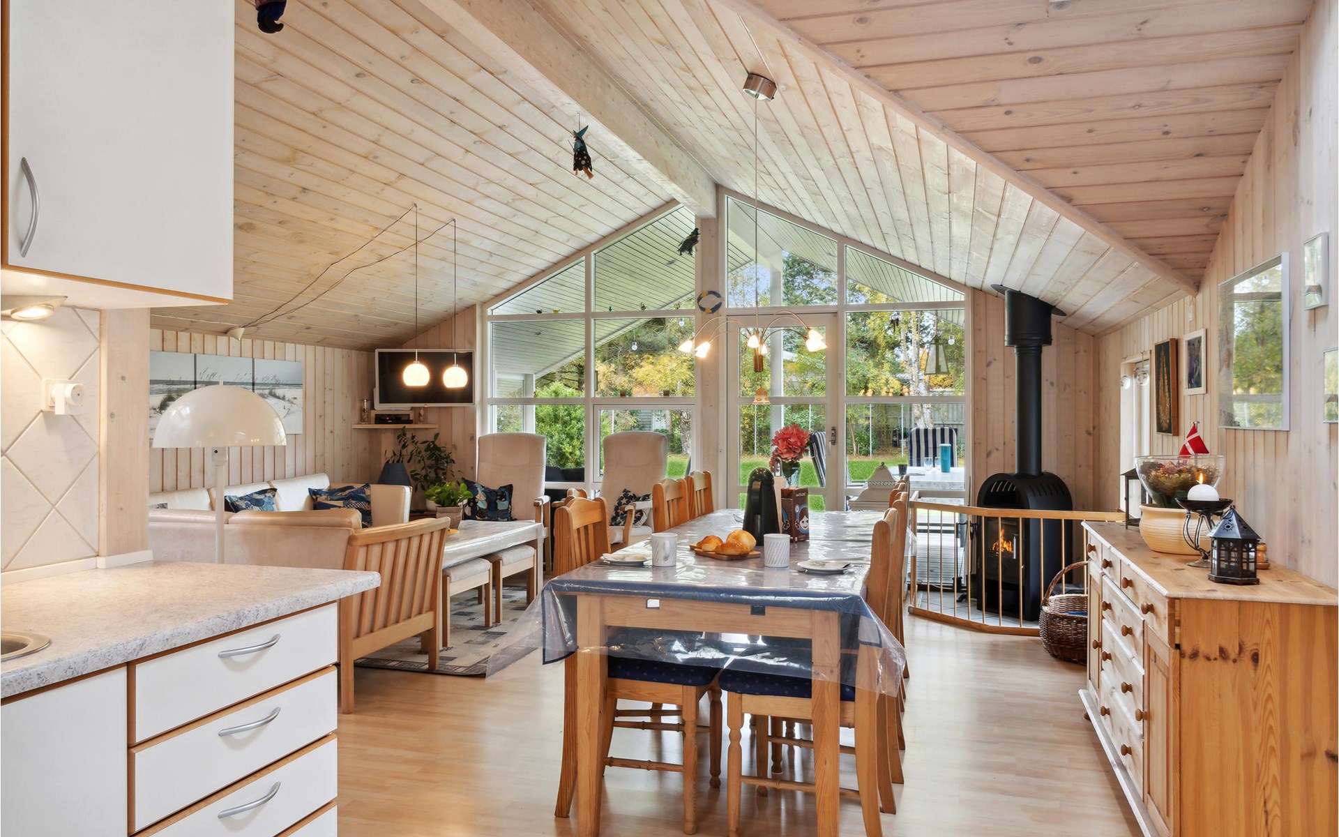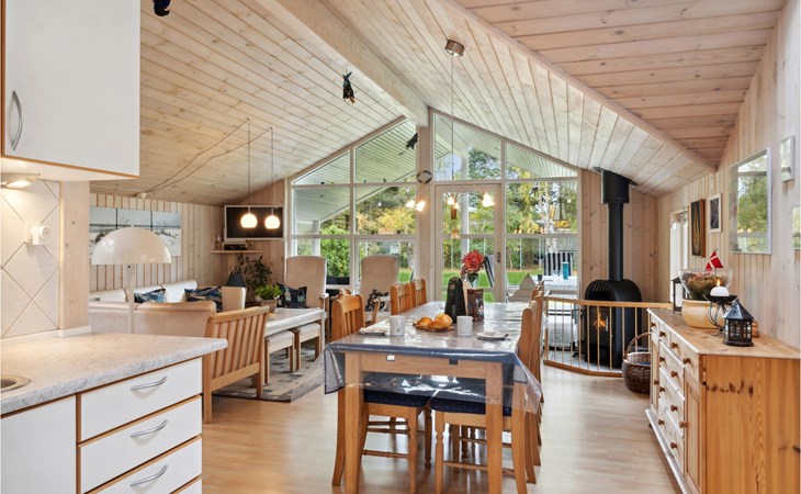 Welcome to this beautiful house, which is just a short distance from the sea and ideally located for wonderful beach days and exciting activities. The homely furnishings in bright, friendly colors with numerous wooden elements make it the perfect place to relax with the family. Whether cooking and eating together or chatting on the cozy sofa, here you can enjoy your time together to the fullest. Create a cozy atmosphere in the evening with a fire in the wood-burning stove and enjoy beautiful views through the large windows.