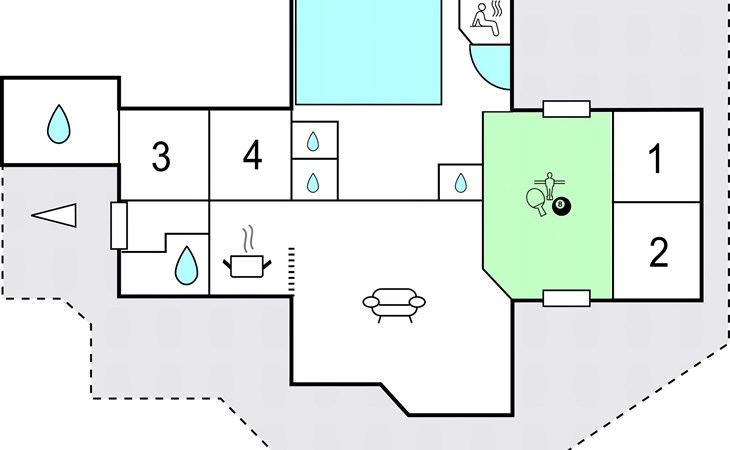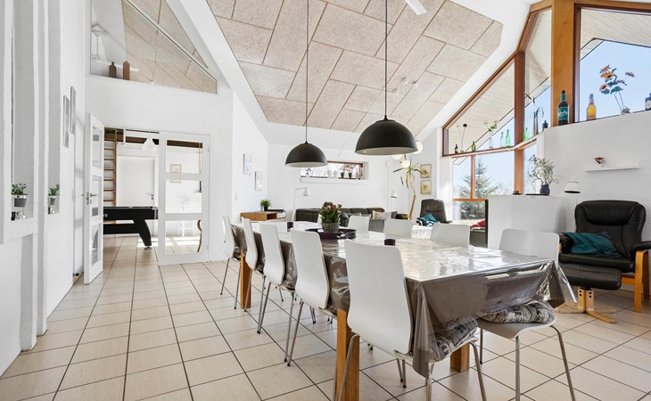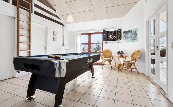 Beautiful vacation home with a lot of details and a wonderful swimming pool. A house with a lot of modern equipment, e.g. billiards, beach volley, PlayStation, Internet, which will certainly give you a lot of variety. The same goes for the large pool area, which invites you to all kinds of activities in the wet element. The house has a, compared to other pool houses, energy cost saving and therefore environmentally friendly heat pump. Located in the quiet vacation area of Ejsingholm, this property is just a few steps from the water. The beach by the fjord is child-friendly, it is shallow and very suitable for sailing.