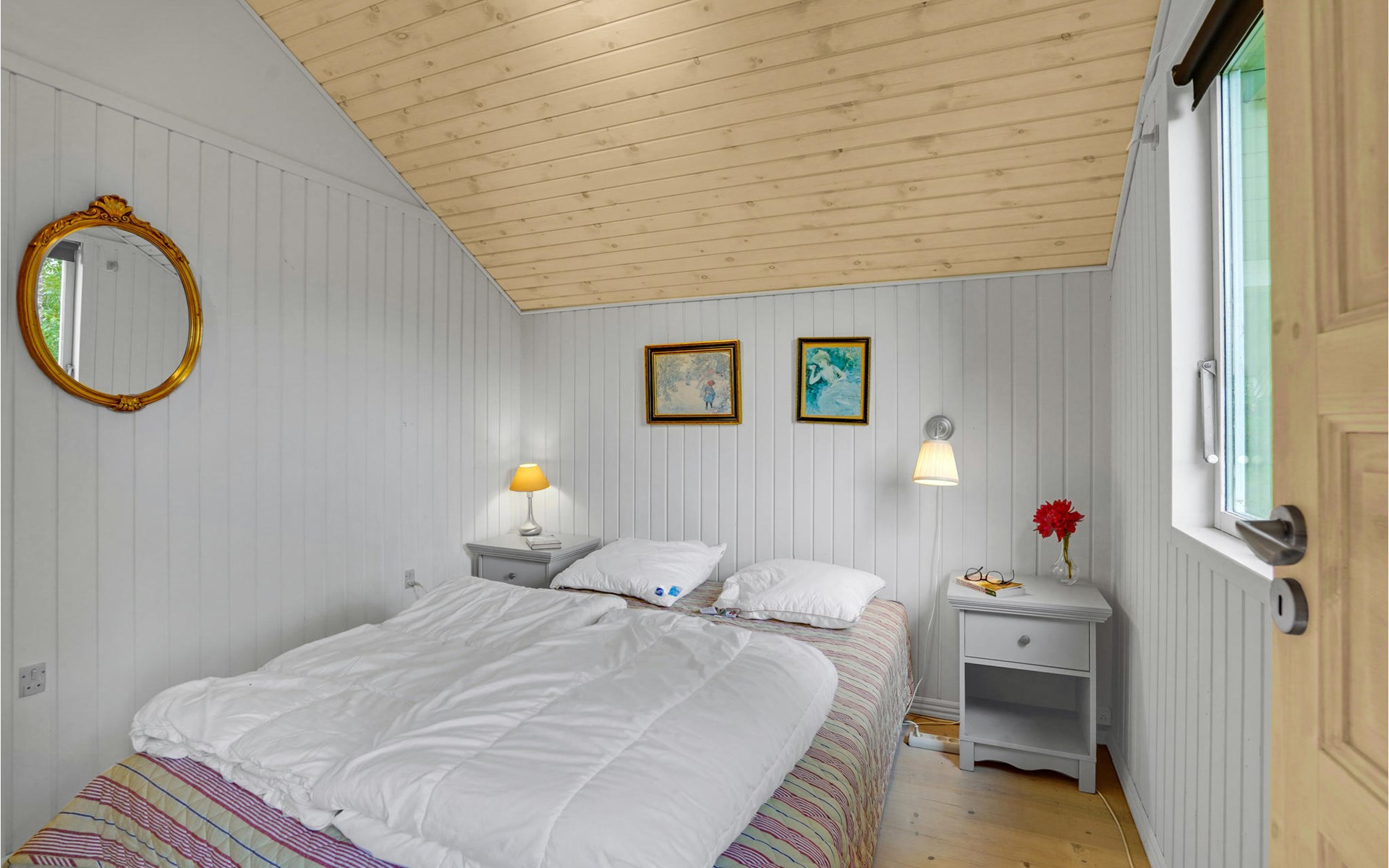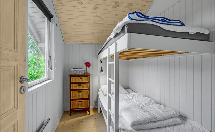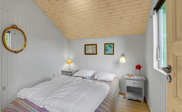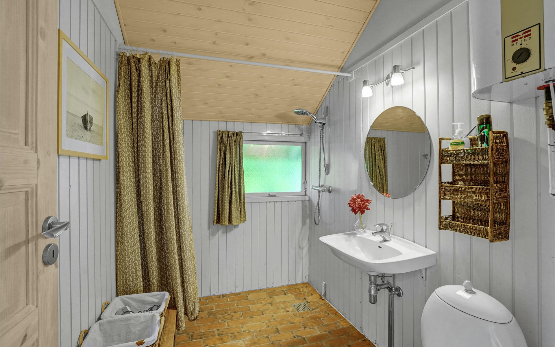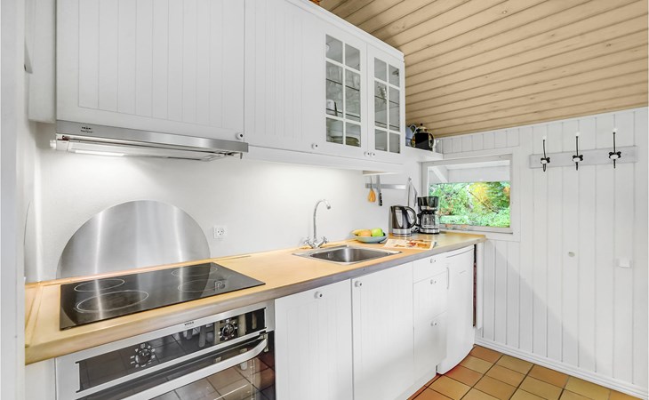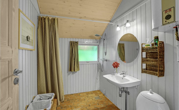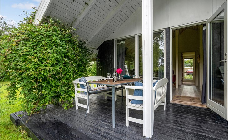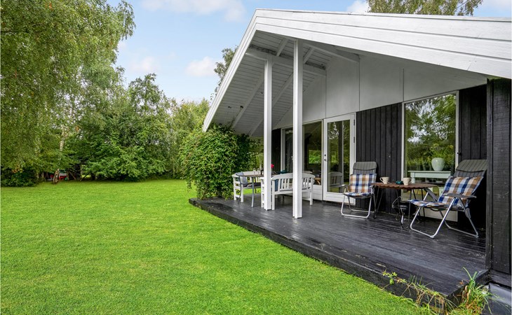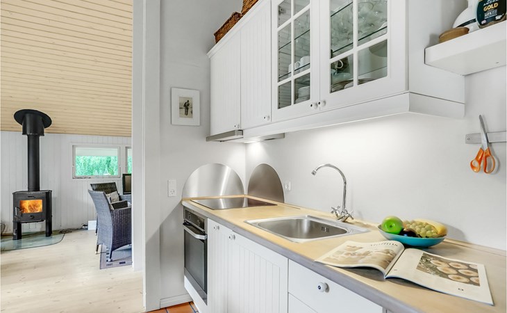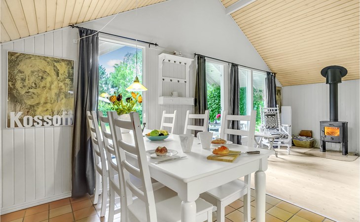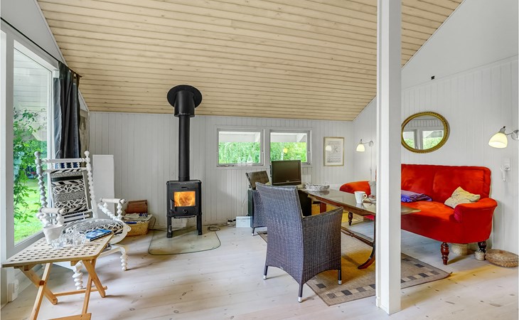 This beautiful, small vacation home is located on Næsby beach in Lolland. You can expect a kitchen with dining area, which is in open connection with the living room with wood stove. From here the patio door leads to the covered terrace. The house can accommodate a total of 6 people in 3 bedrooms and a living area of 55 m². There are 2 double bedrooms and 1 other bedroom with bunk beds. The bathroom has a shower.