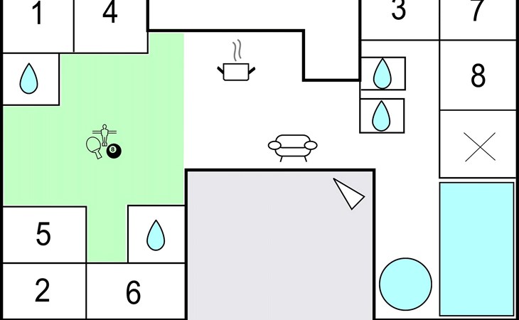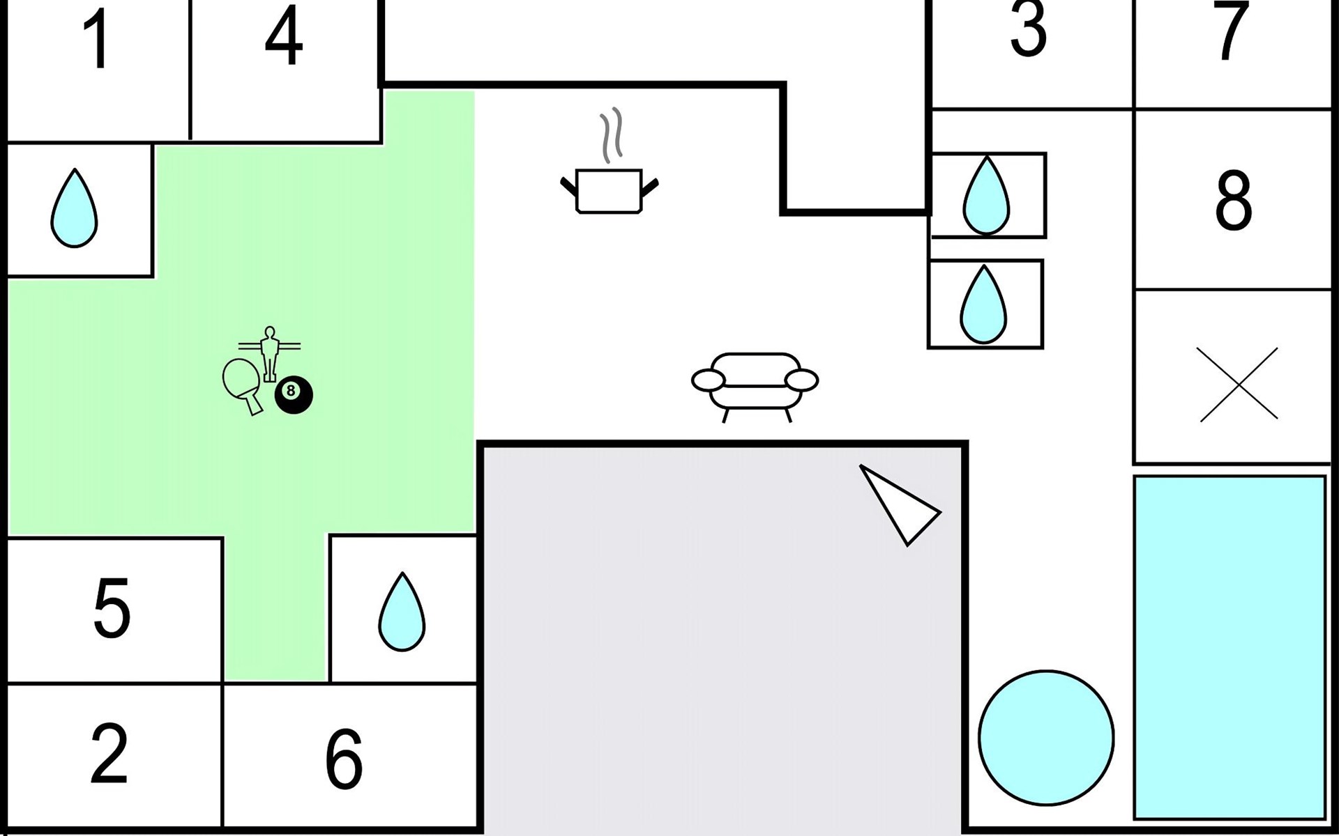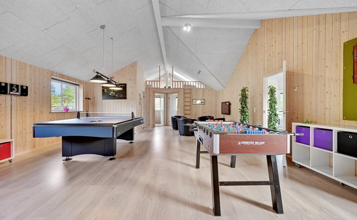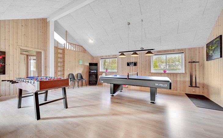 A popular vacation home with 8 bedrooms and two open sleeping lofts. It has 4 beautiful bathrooms. It is furnished with comfortable furniture and is equipped with everything to feel at home. It contains a nice open kitchen-living area, located in the middle of the house, which automatically becomes a gathering place around the cozy fireplace. The activity room is located next to the living room. The pool room is equipped with pool, whirlpool and sauna. On the beautiful terraces you can relax and enjoy your vacation to the fullest. On balmy summer evenings you can light the grill and prepare delicious meals. The advance payment for the final cleaning is paid in cash in the house together with the cost of consumption. Bed linen, towels, crib and high chair can be rented directly in the service office.