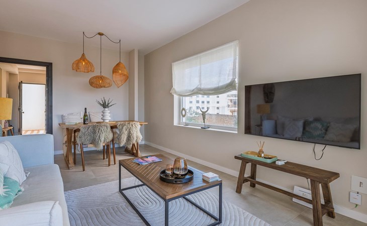 The apartment is located in a beach area, close to restaurants, bars, and shops, and less than 500 meters from El Arenal beach.