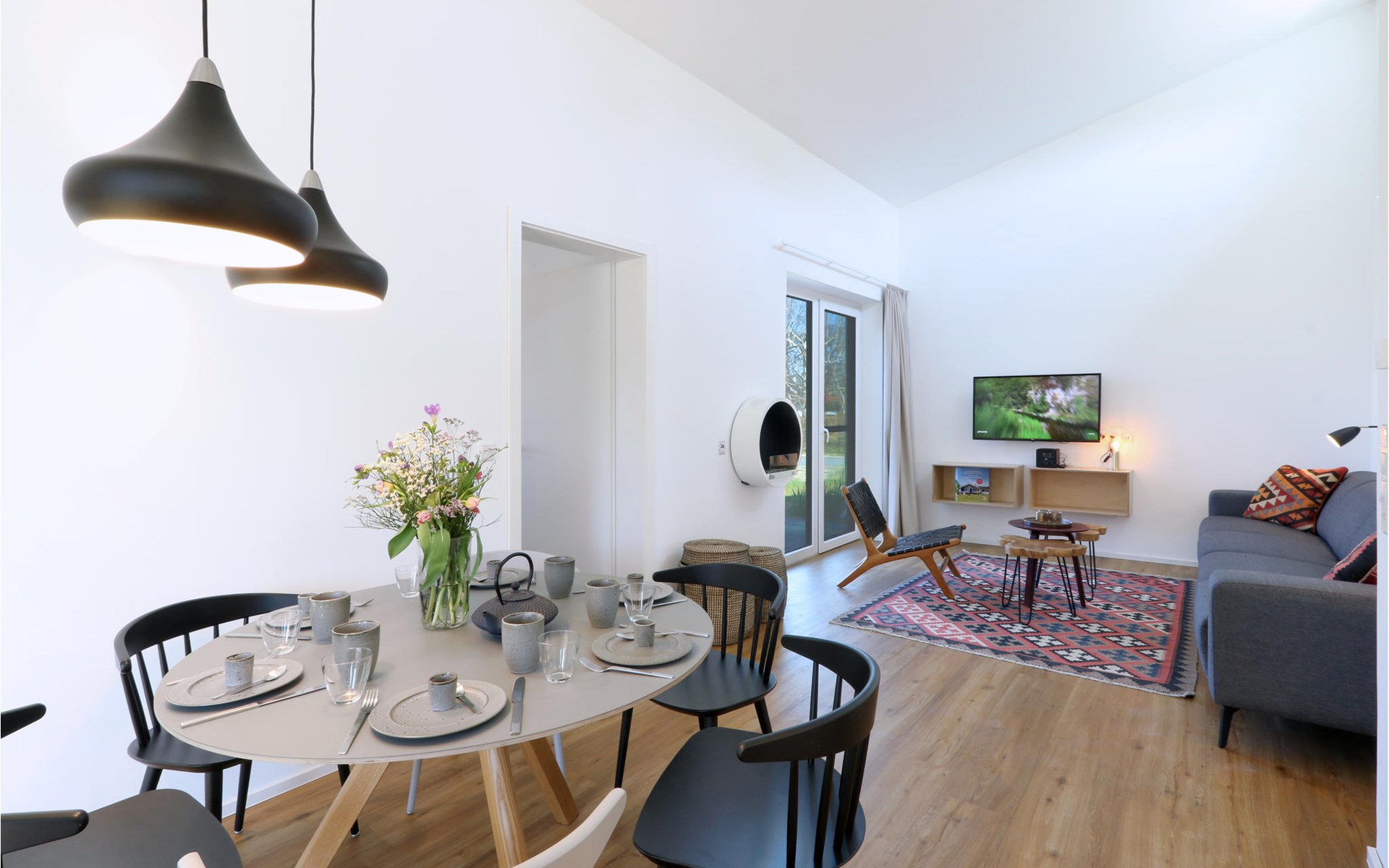Welcome to your holiday home, which offers you as a family with children or as a small group of friends a cosy, homely ambience with Scandinavian design furnishings. Two terraces for sitting and eating in the sun, the bio-fireplace and your own sauna leave nothing to be desired. The open-plan kitchen invites you to cook and linger. There is an open-plan bedroom on the gallery.