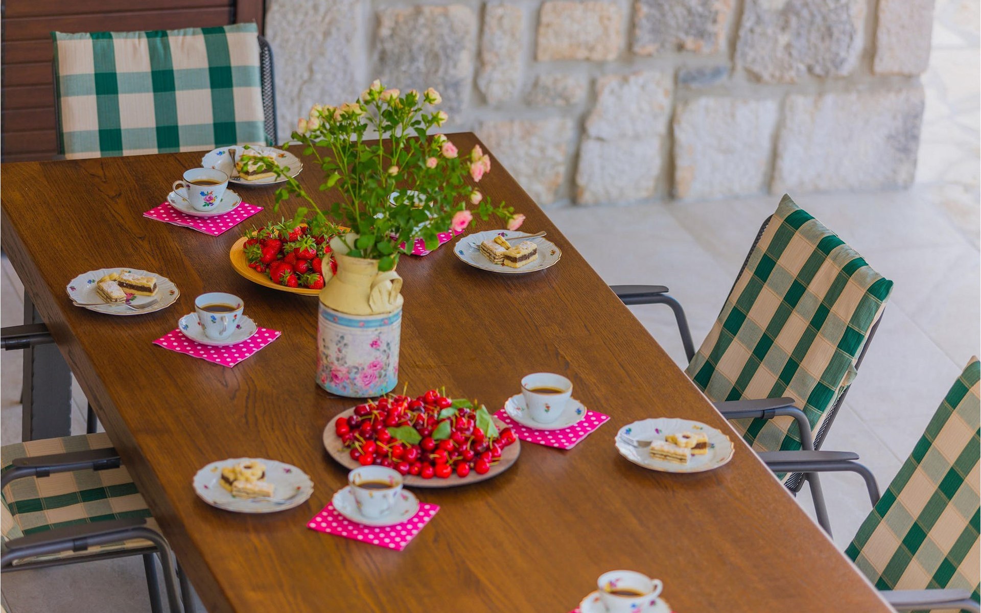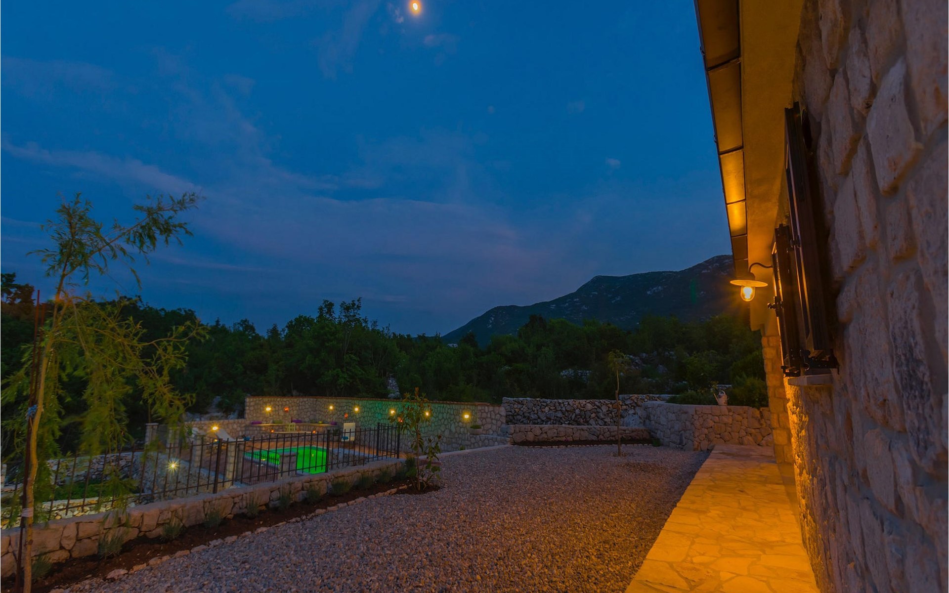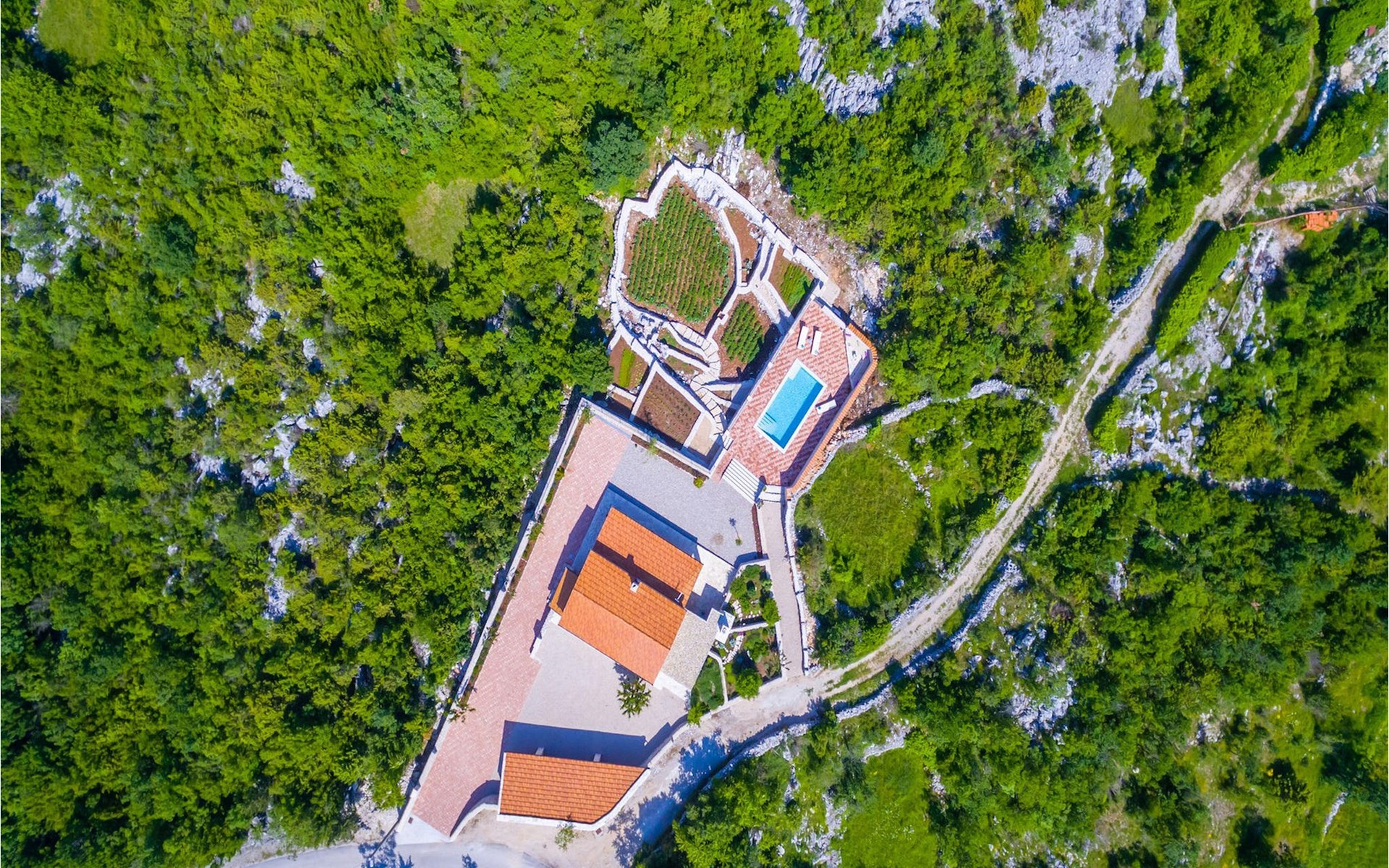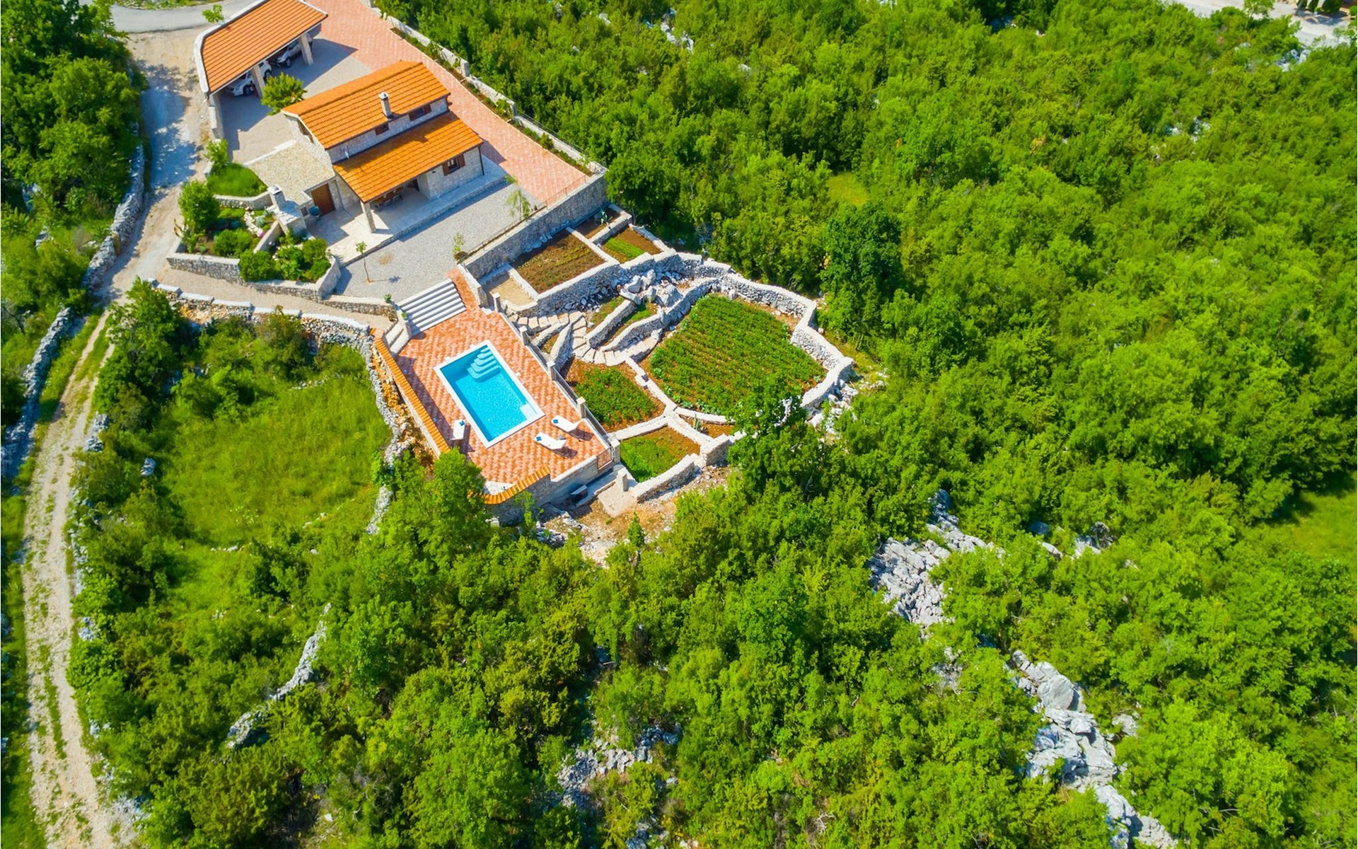 Villa Gardens is located in the small village of Duge Njive immersed within the spectacular karst landscape typical for the Dalmatian hinterland. There is a local restaurant at only 500 m from the villa, offering traditional spit roasted lamb and delicious homemade ham and cheese. For a larger variety of restaurants, bars and stores head to Vrgorac (cca. 20 km). This small town boasts rich cultural and gastronomic heritage which can be witnessed in the beautiful ethno-villages and agrotourisms of the area. The highlight is, however, the nearby Makarska Riviera, with its heavenly beaches, fragrant pinewoods and the stunning Biokovo Mountain towering above the glorious coastline. Lively nightlife and a rich variety of water sports are available here, as well as daily trips to the beautiful islands of Hvar and Brac. With mountains, sea and rivers side by side, this region is also a perfect playground for adventure enthusiasts.