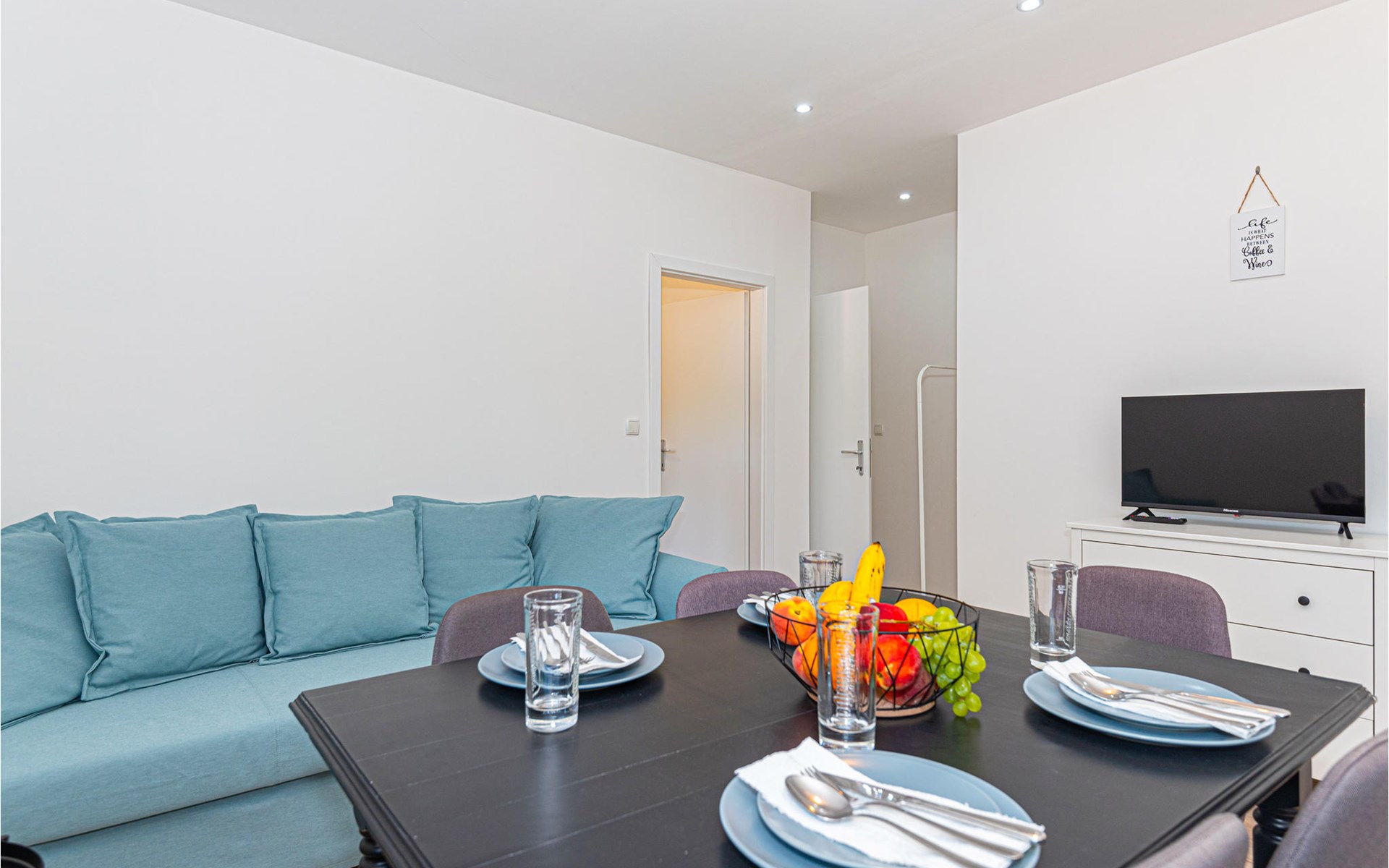 This beautiful apartment offers everything you and your friends or family need for a relaxing or adventurous vacation under the Croatian sun. The attractive living and dining area leaves nothing to be desired. Here you can cook, eat, play or simply relax together.
