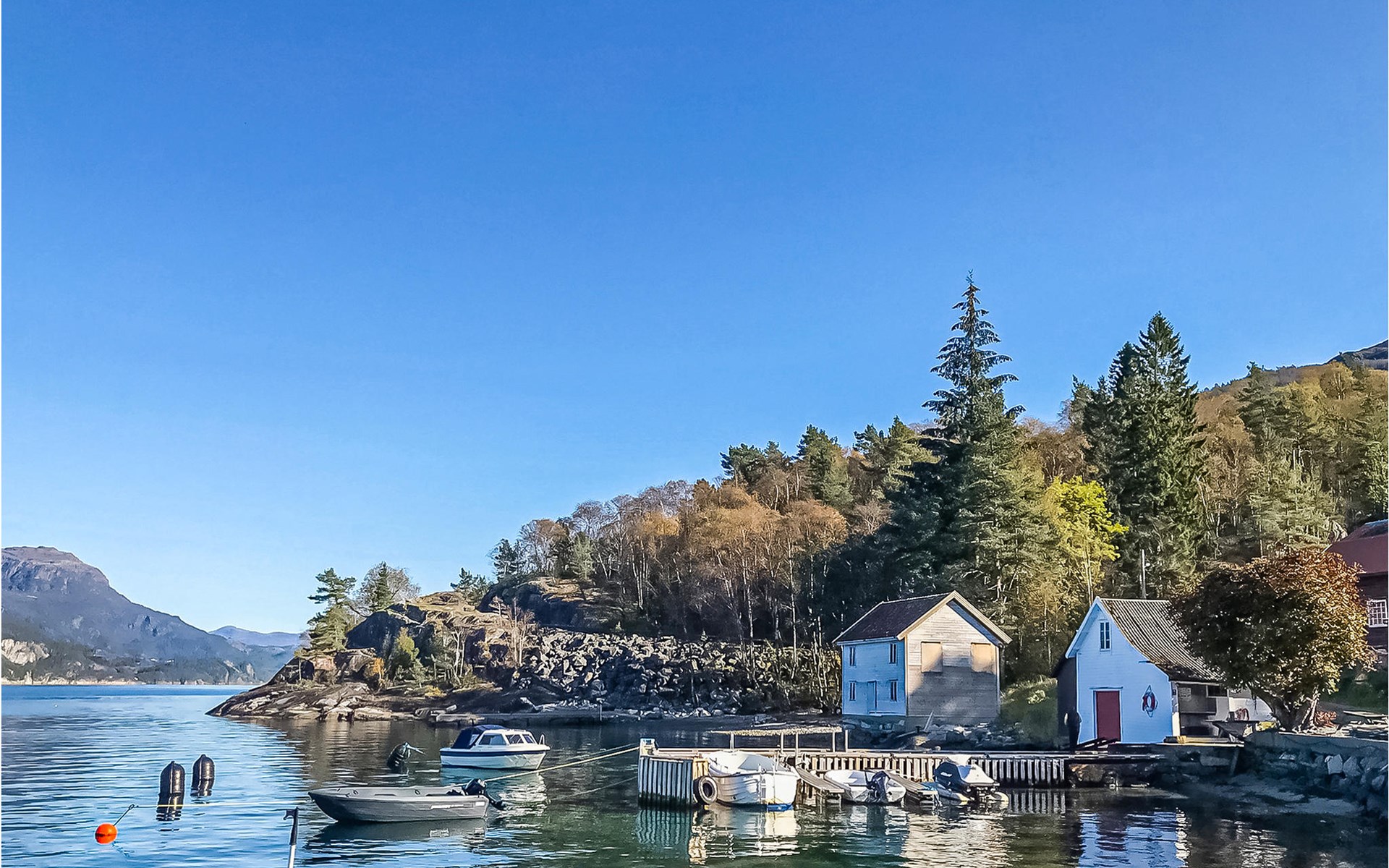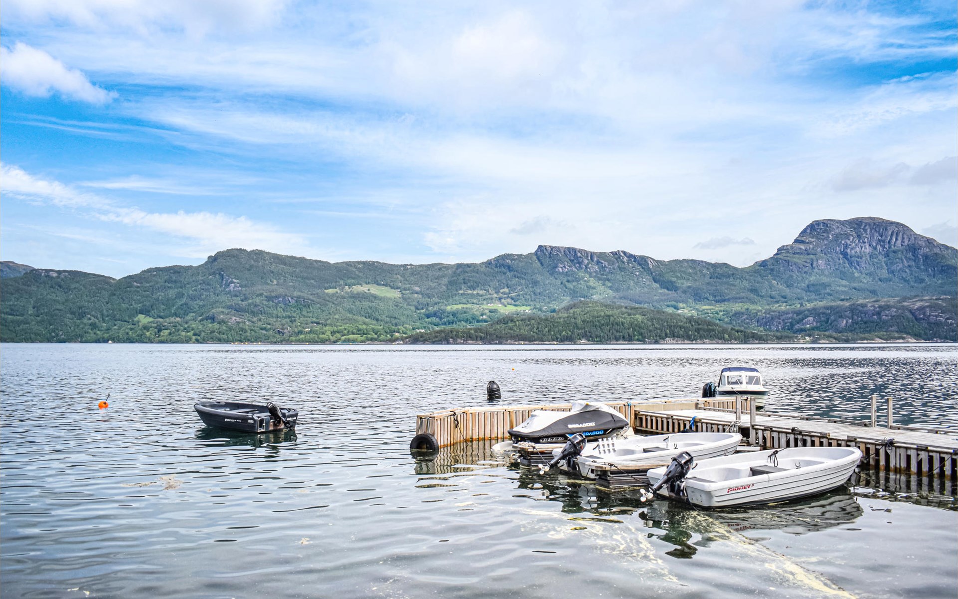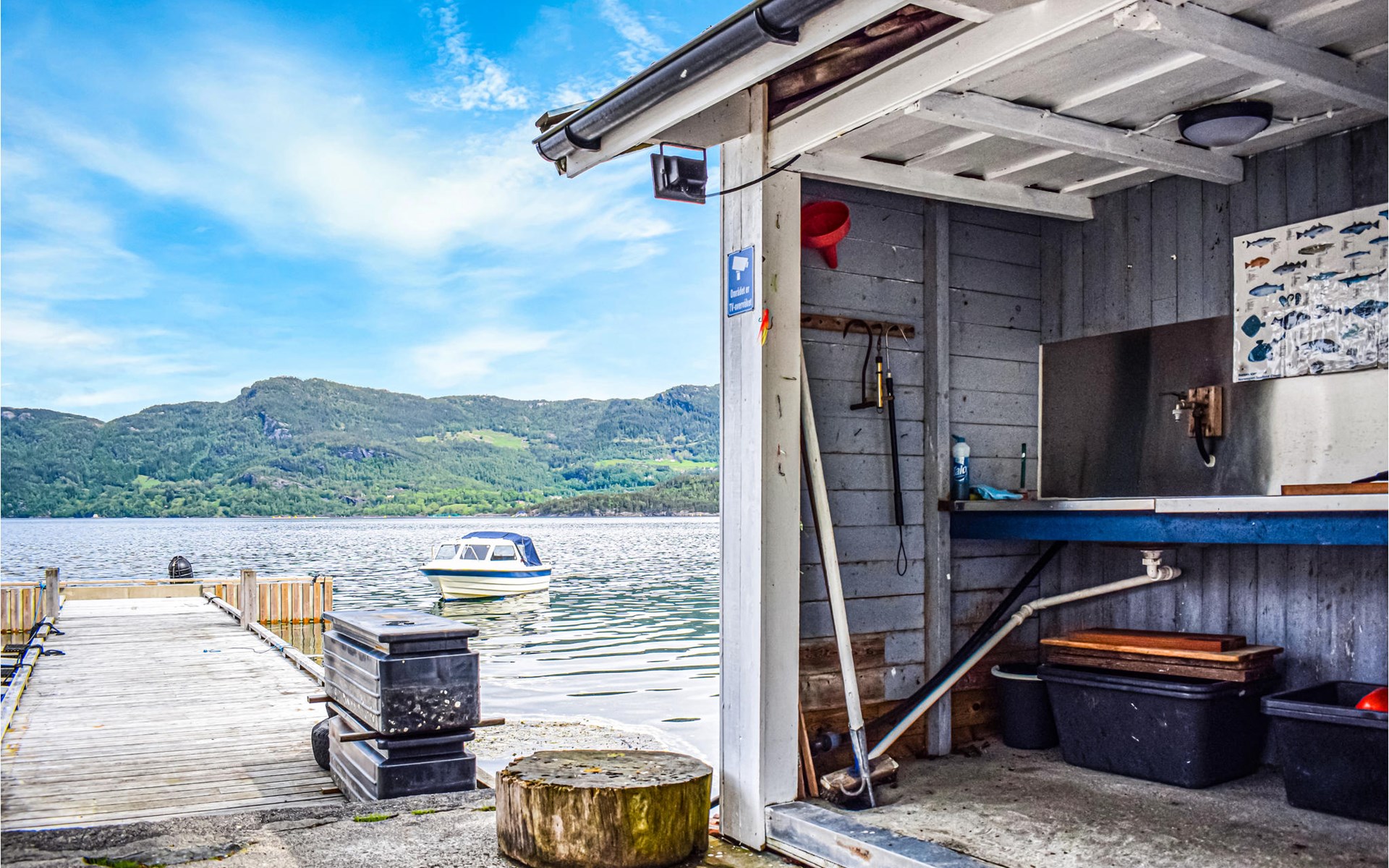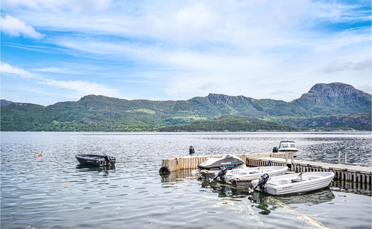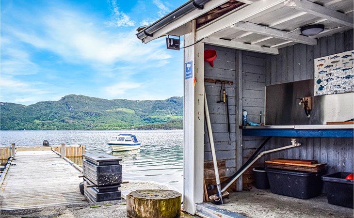 With beautiful hiking opportunities and direct access to Vindafjorden, this area can be described as a rare jewel. Those who want to spend nice days on the fjord and try their fishing luck can hire a good quality leisure boat. For fishing enthusiasts, there is also a larger boat with an echo sounder to find the best fishing spots nearby. The holiday apartment has its own access to the water and a jetty with a filleting area is shared with the neighbouring house N16271. The surrounding area offers wonderful walks and a day trip to Hellandsknuten is highly recommended. The popular hiking destination Himakåna in Nedstrand, also called little Trolltunga, is only half an hour away by car/ferry. At the same time, you can visit the climbing park in Nedstrand, which is fun for the whole family.