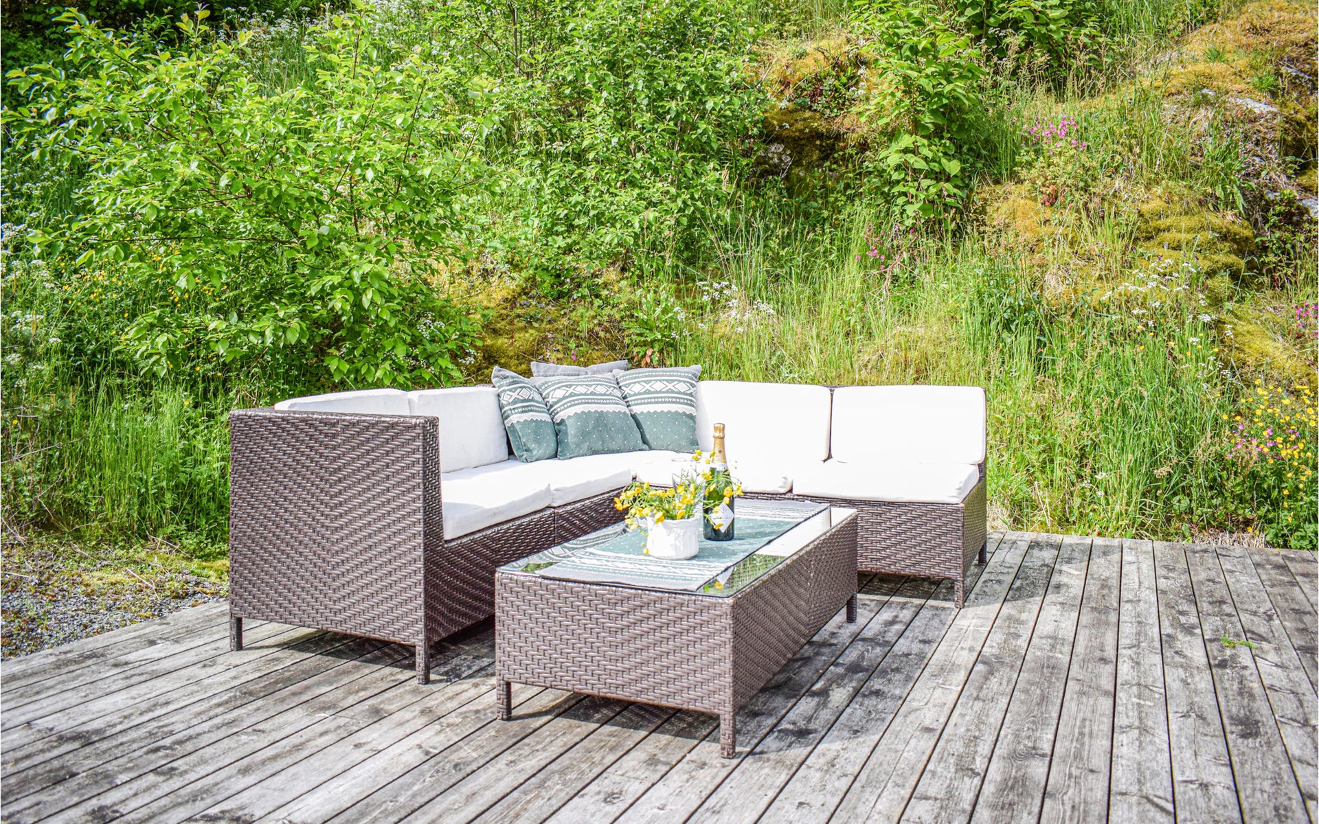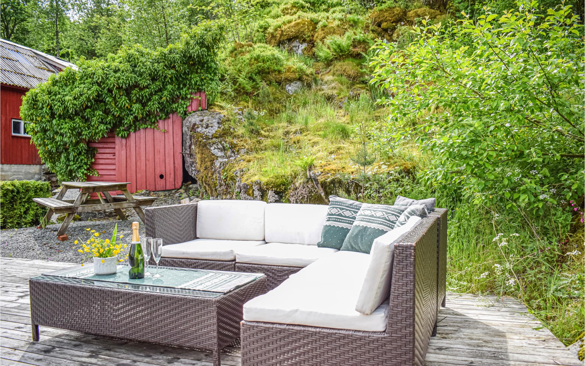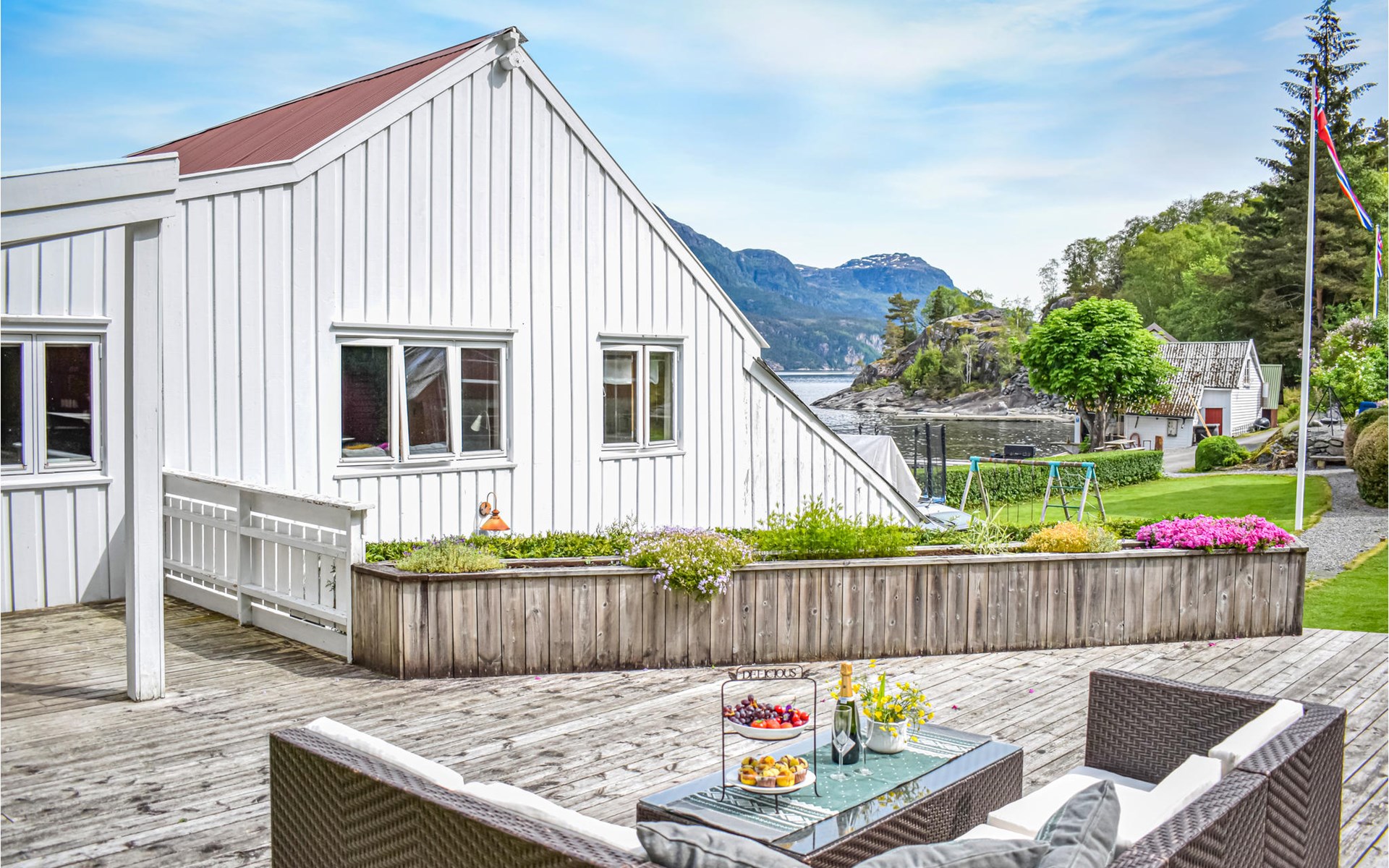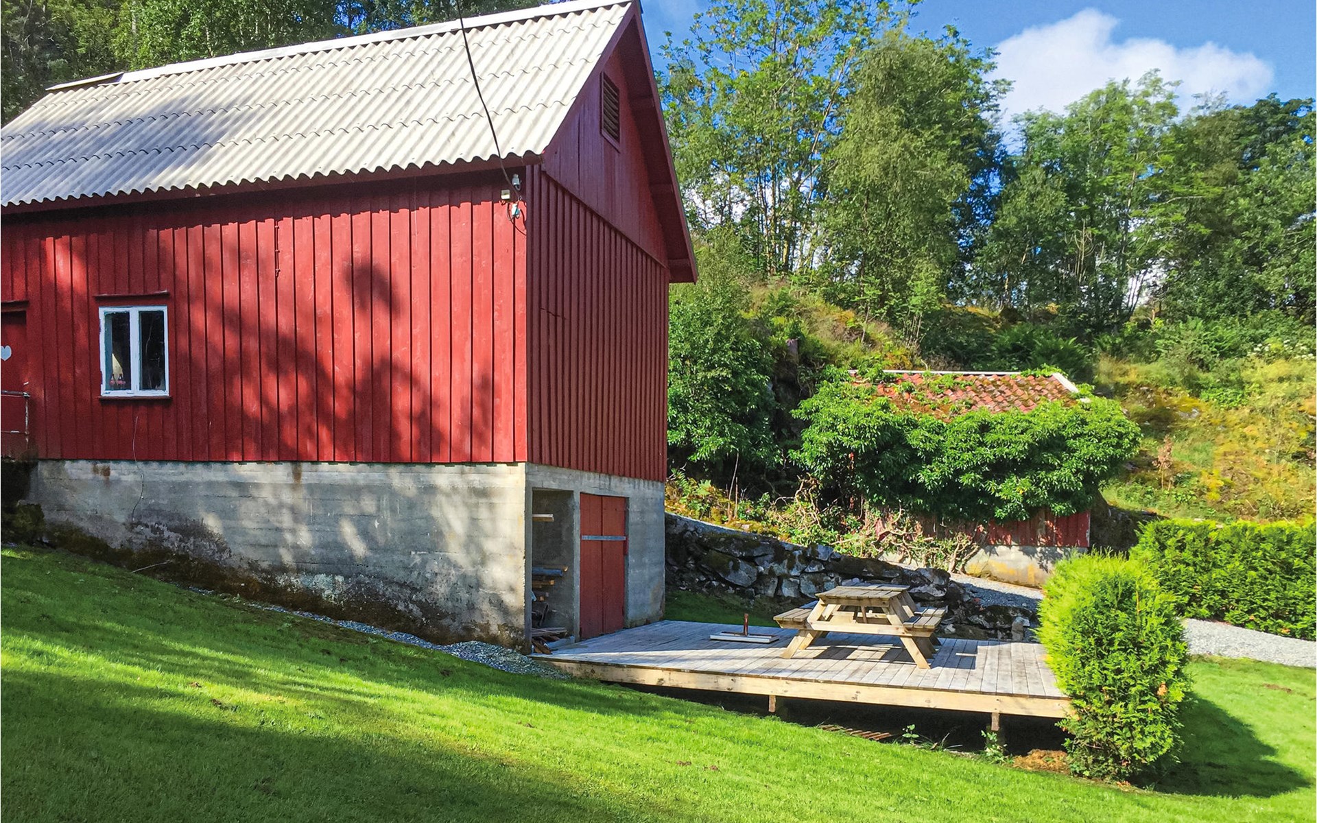 With beautiful hiking opportunities and direct access to Vindafjorden, this area can be described as a rare jewel. Those who want to spend nice days on the fjord and try their fishing luck can hire a good quality leisure boat. For fishing enthusiasts, there is also a larger boat with an echo sounder to find the best fishing spots nearby. The holiday apartment has its own access to the water and a jetty with a filleting area is shared with the neighbouring house N16271. The surrounding area offers wonderful walks and a day trip to Hellandsknuten is highly recommended. The popular hiking destination Himakåna in Nedstrand, also called little Trolltunga, is only half an hour away by car/ferry. At the same time, you can visit the climbing park in Nedstrand, which is fun for the whole family.